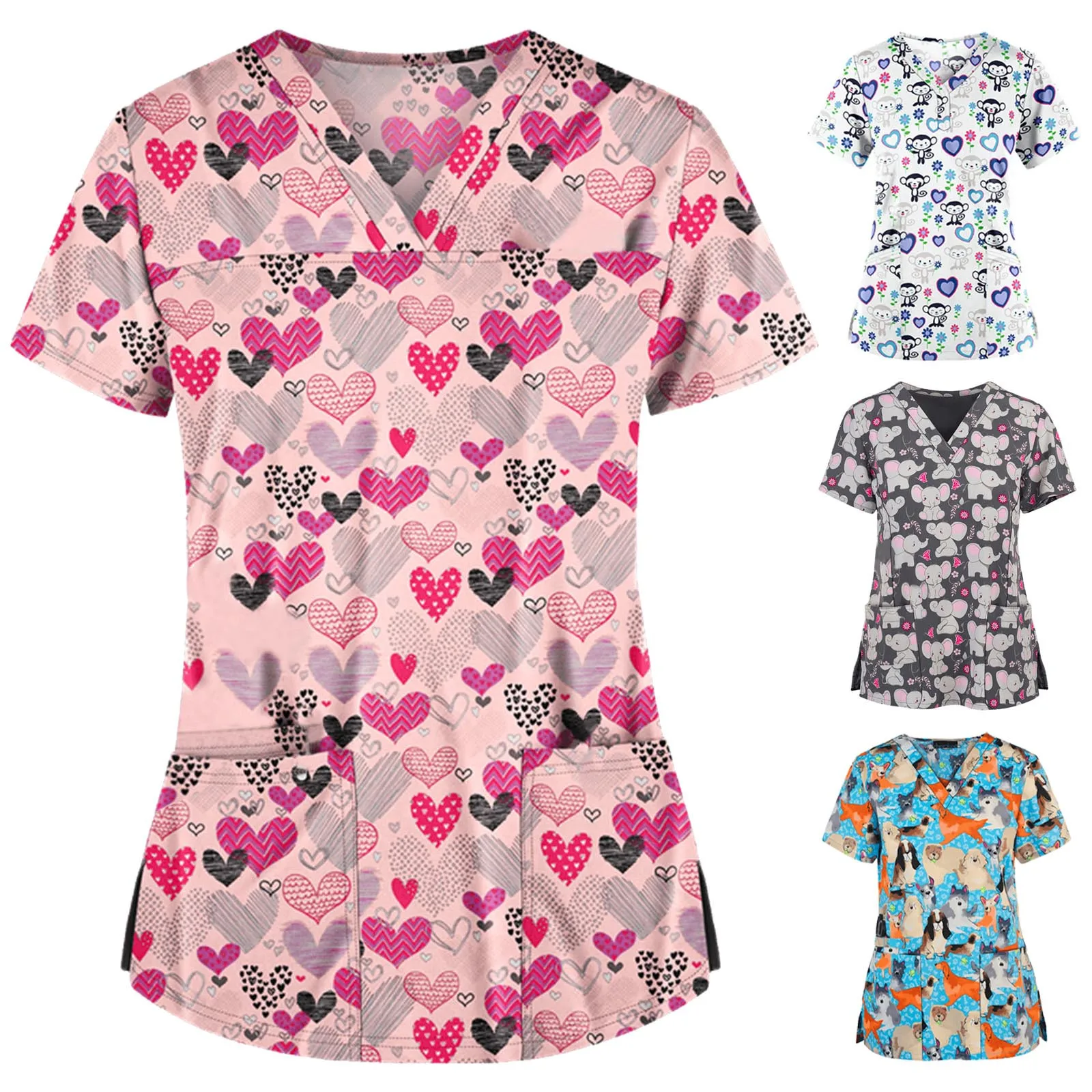 Униформа медсестры размера плюс, Женские топы с коротким рукавом и V-образным вырезом, Рабочая Униформа, аксессуары для медсестер, женская одежда с карманами