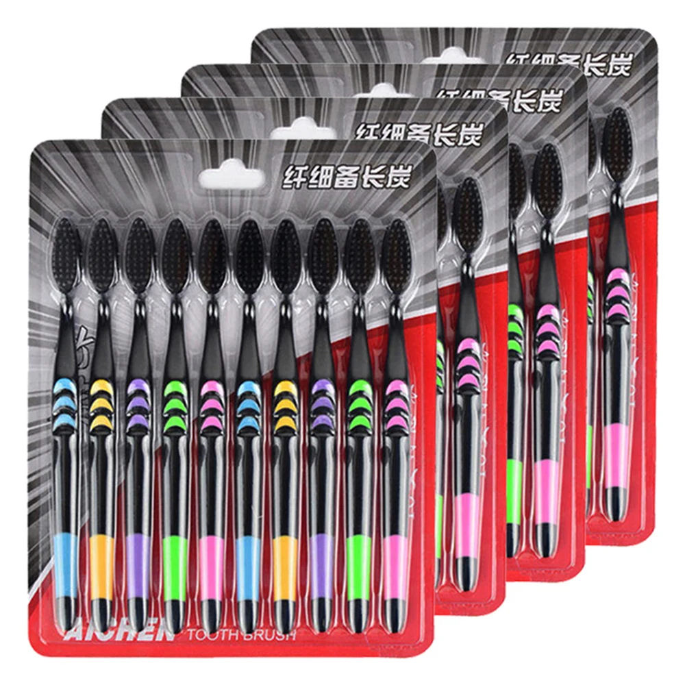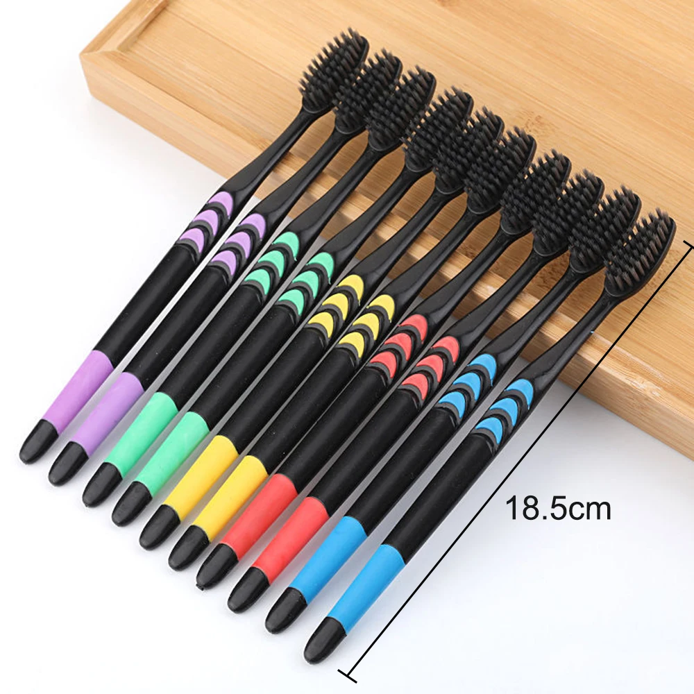 10 шт. зубная щетка с мягкой щетиной для взрослых бамбуковый уголь Бытовая тонкая шерсть антибактериальные мужские и женские мужские Семейные уход за полостью рта