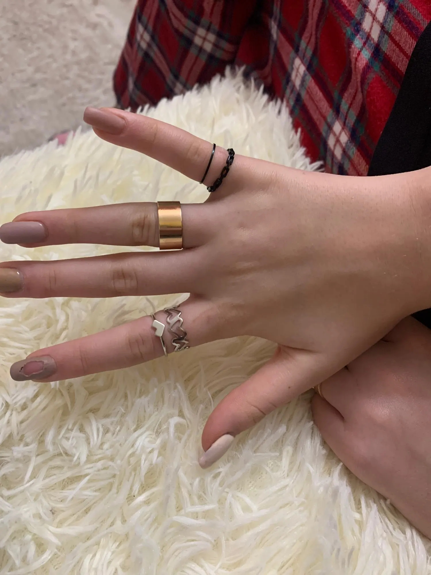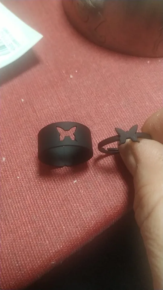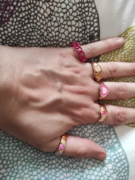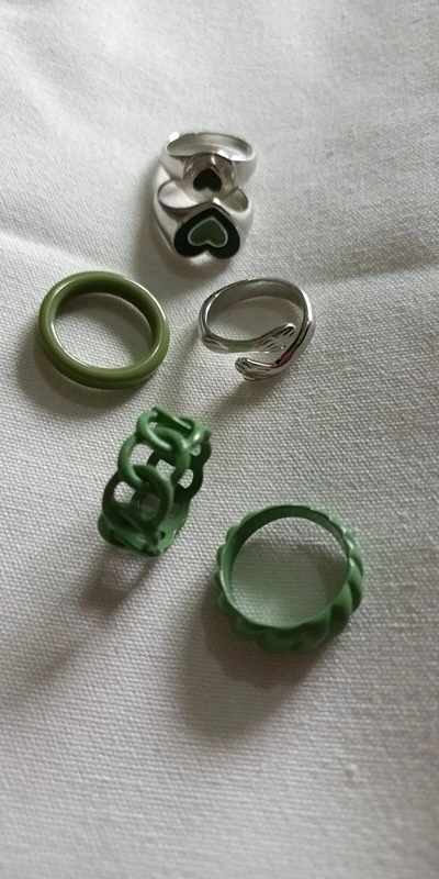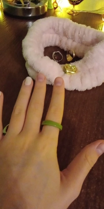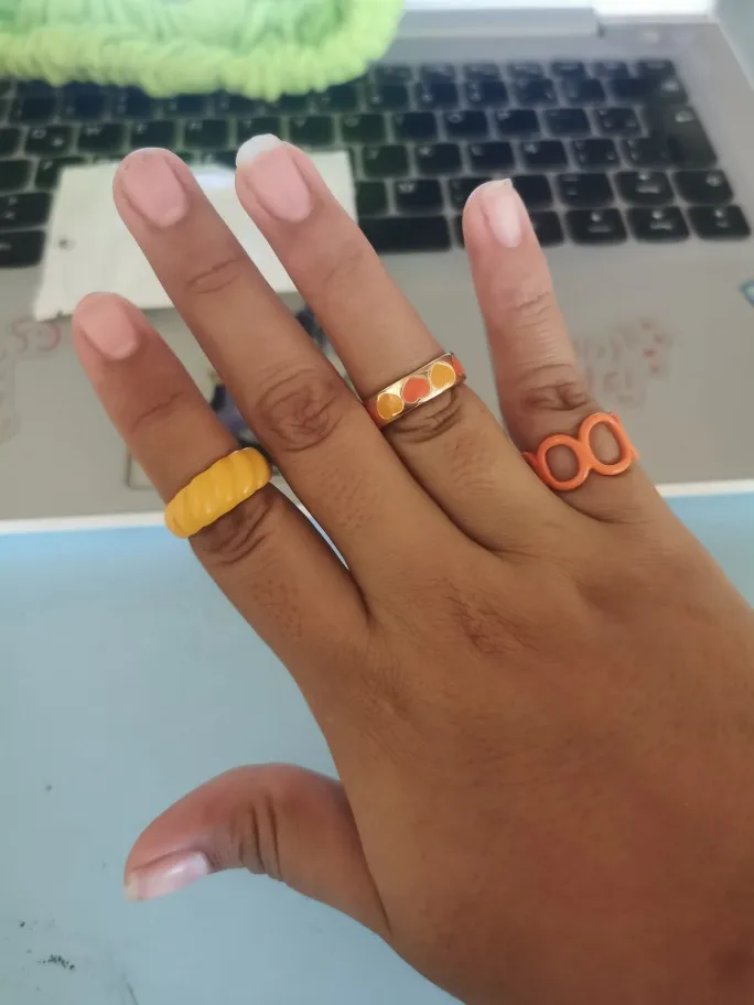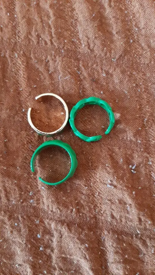Колечки супер, легко регулируются по диаметру пальца. Одно кольцо (на безымянном) с дефектом окрашивания