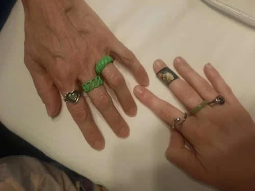 Подошло быстрее, чем я думал. Они очень красивые, но, возможно, они вам не подойдут, если ваши пальцы будут большими. Это то, что у них, они, вероятно, не подойдут вам bc, они могут быть больше или меньше, что ваши пальцы