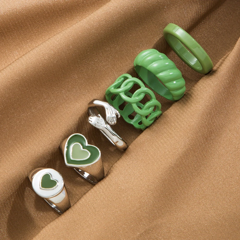 Женские кольца с цепочкой FNIO Y2K, разноцветные кольца в виде сердца из полимерной смолы, в Корейском стиле, ювелирные украшения