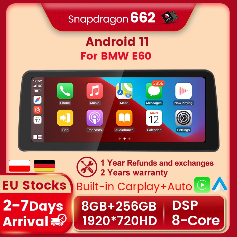 Blu-Ray антибликовый Qualcomm Snapdragon 662 Android 11 DSP Carplay 256G для BMW 5 серии E60 E61 E63 E64 E90 E91 E92 Автомобильный GPS