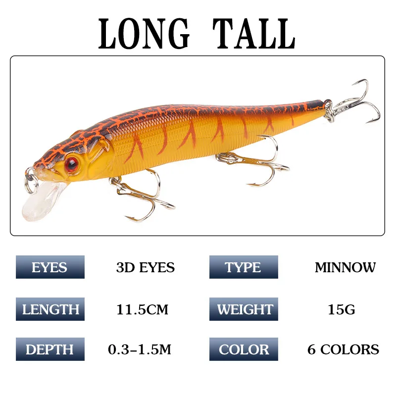 Искусственная наживка Mino, 1 шт., новая приманка см, 15 г, 6 цветов, с кольцом и тремя крючками