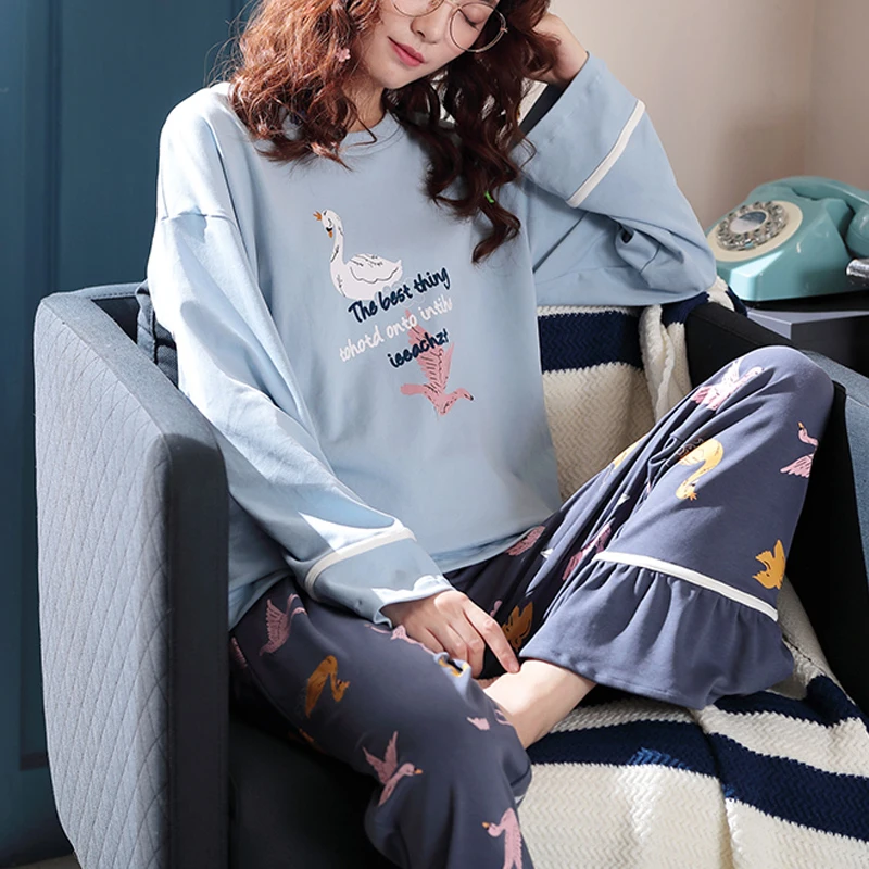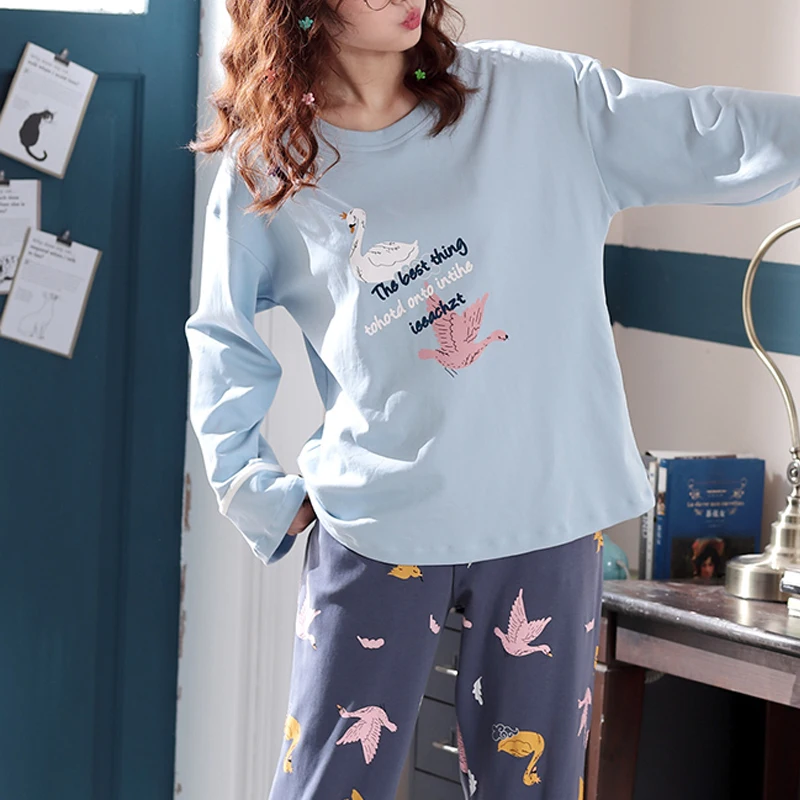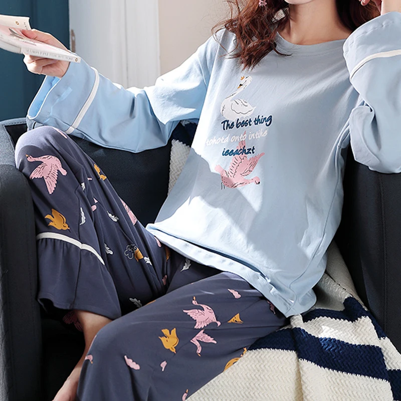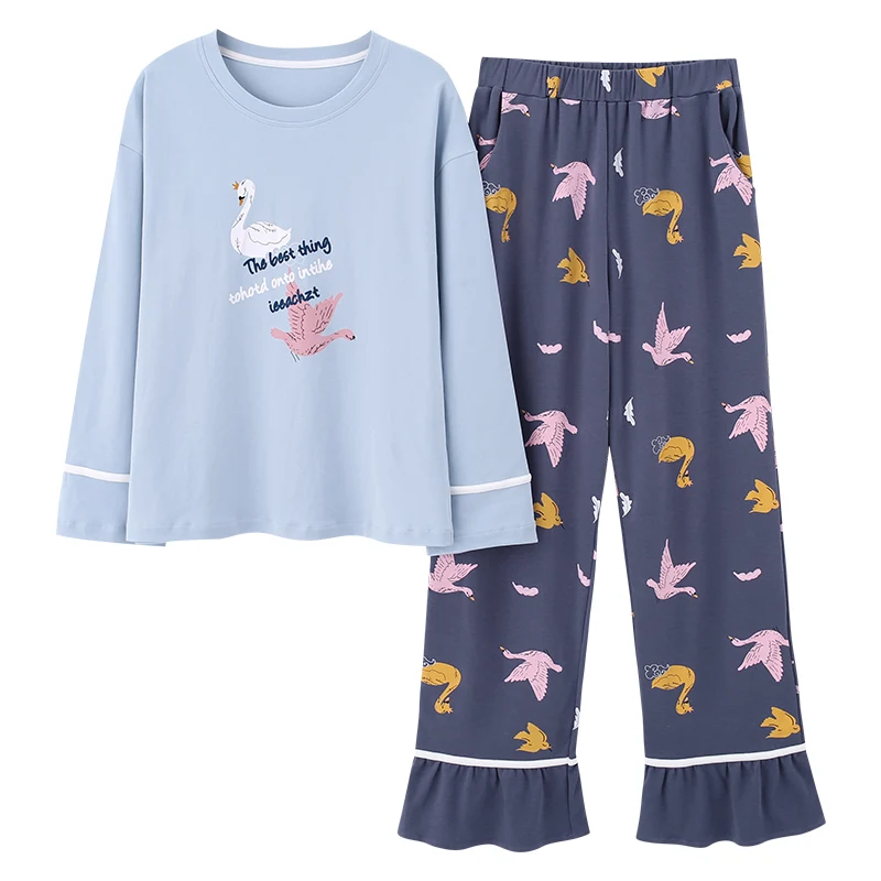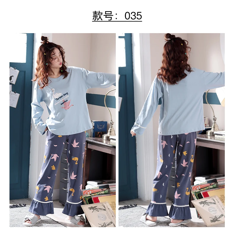 Пижама женская осенне-зимняя с длинным рукавом и брюками