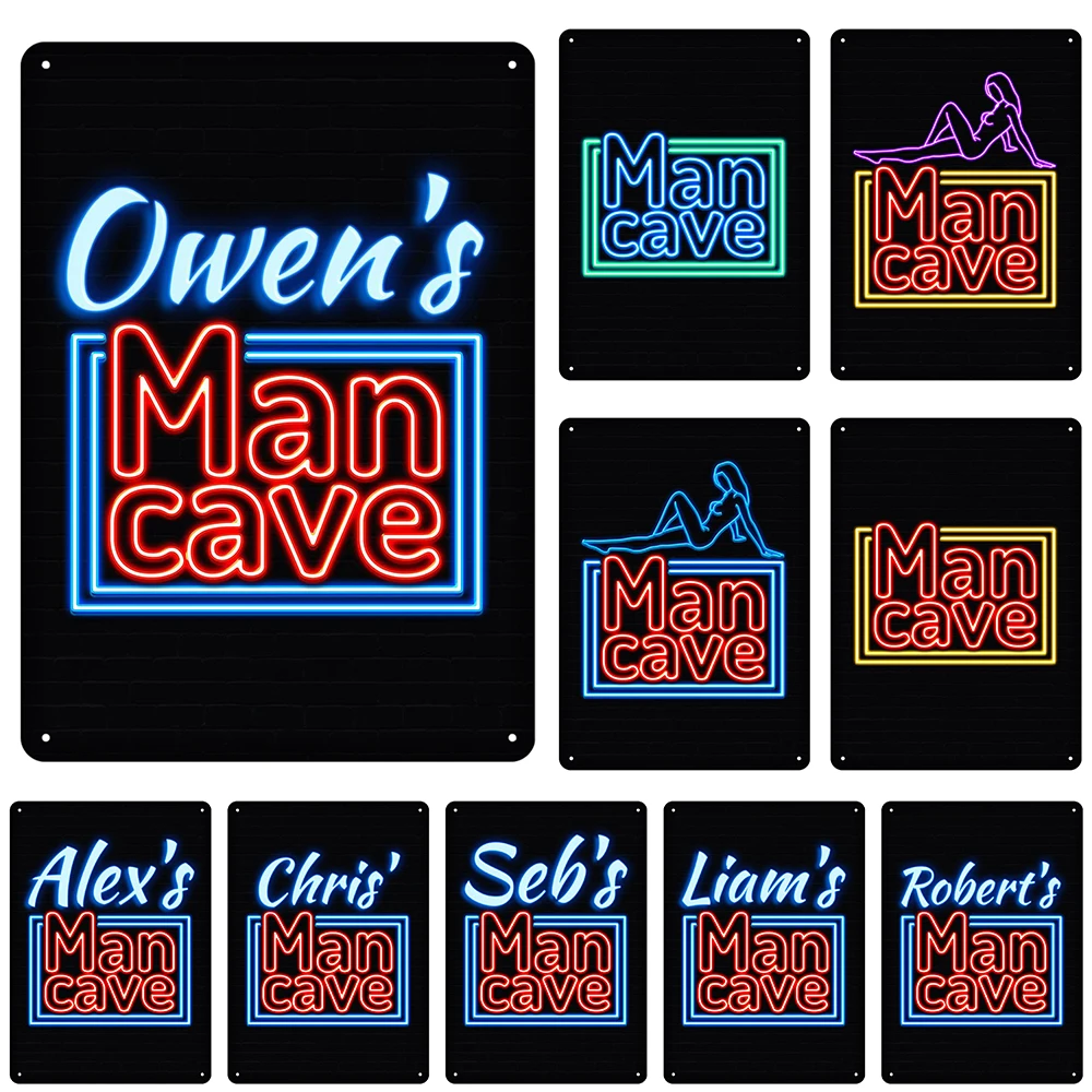 Креативный неоновый жестяной знак, мужская пещера, слова, металлические постеры, винтажное название, настенное искусство, табличка, мужская пещера, бар, паб, клуб, алкогольный декор, настраиваемый