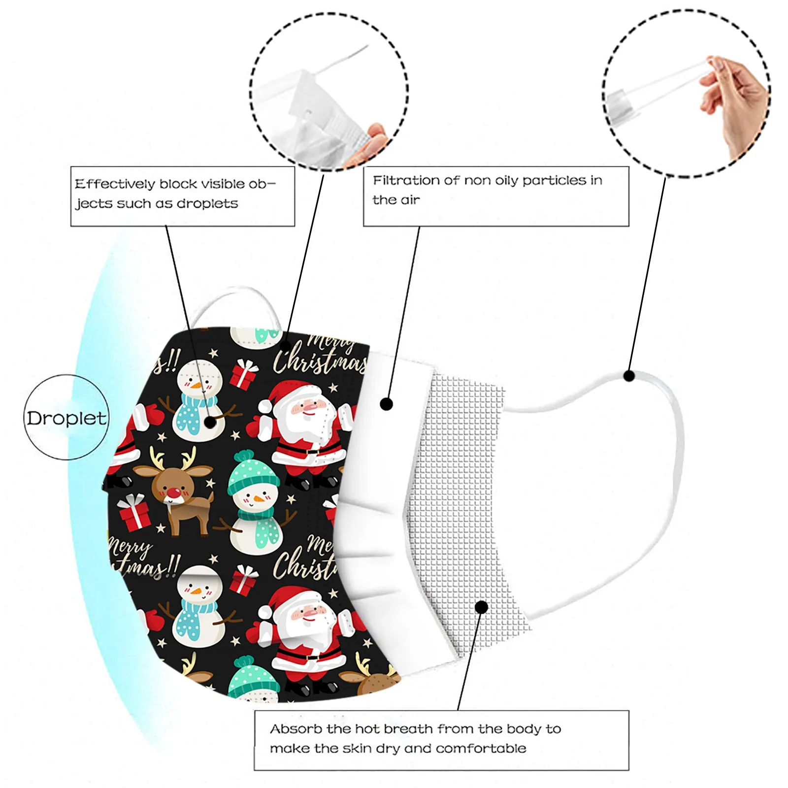 10Детская маскаРождествоОдноразовая маска для лица промышленная 3-слойная Ушная петля