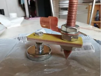 Он работает хорошо, я отрегулировал его так, что наконечник держится до полного отдыха магнита, и я использую заземляющий провод с оригинальным зажимом, Я просто положите этот инструмент там, где хочу, и возьмите там зажим. Простой и эффективный.