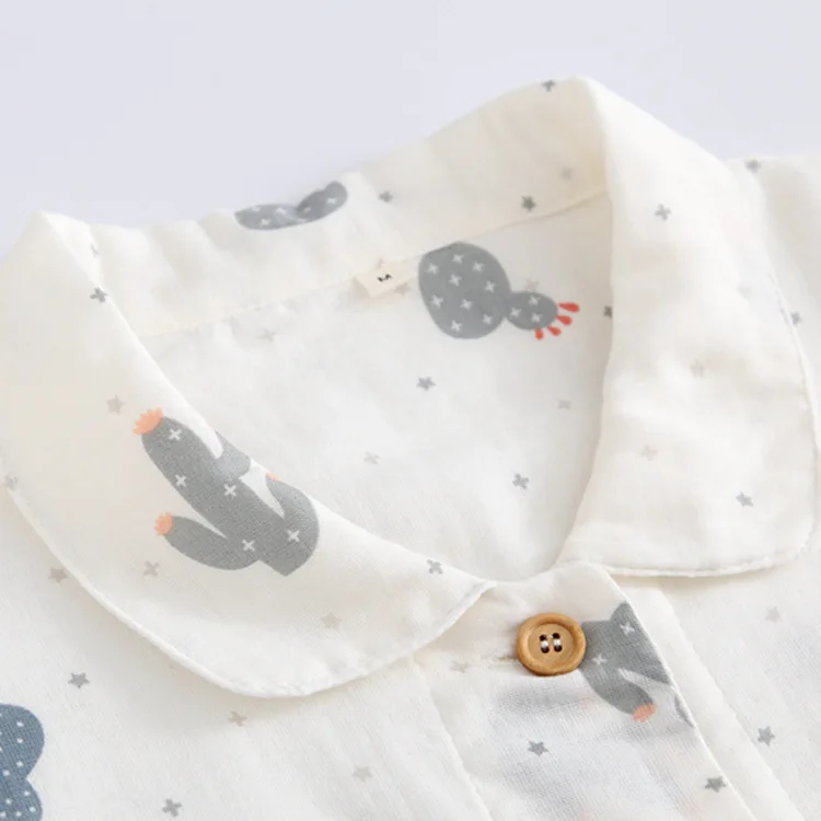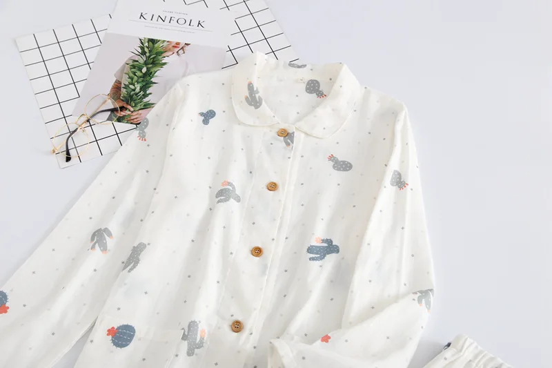 Пижамный комплект Женский из двух предметов, хлопок, двойная марля, Симпатичные штаны с длинными рукавами и мультяшным КАКТУСОМ, домашний сервис в японском стиле