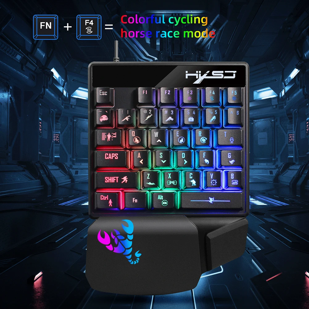 HXSJ игровая клавиатура для одной руки, механическая ручная RGB под...