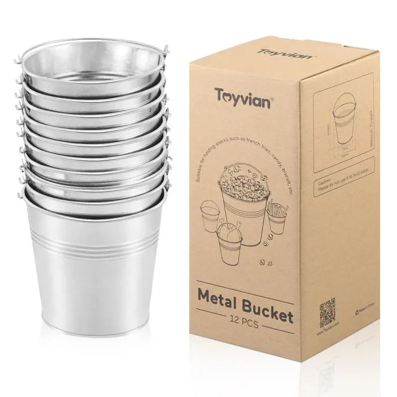 12 шт. безопасные мини жестяные тарелки ведра для закусок металличе...