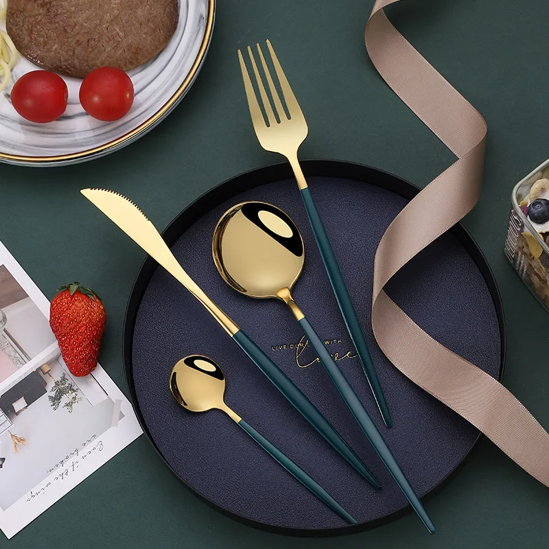 Набор столовых приборов из нержавеющей стали золотистого цвета, 4 шт.