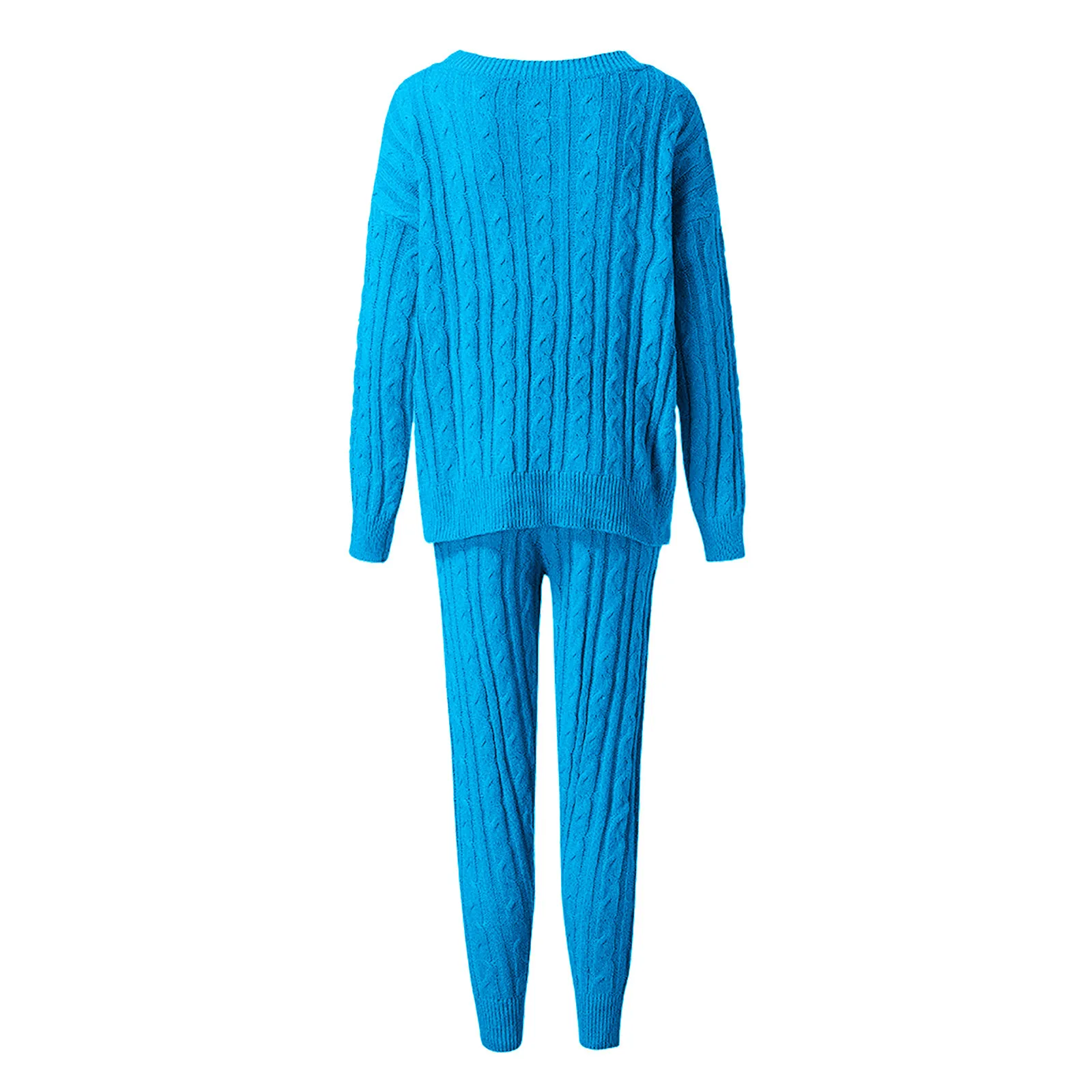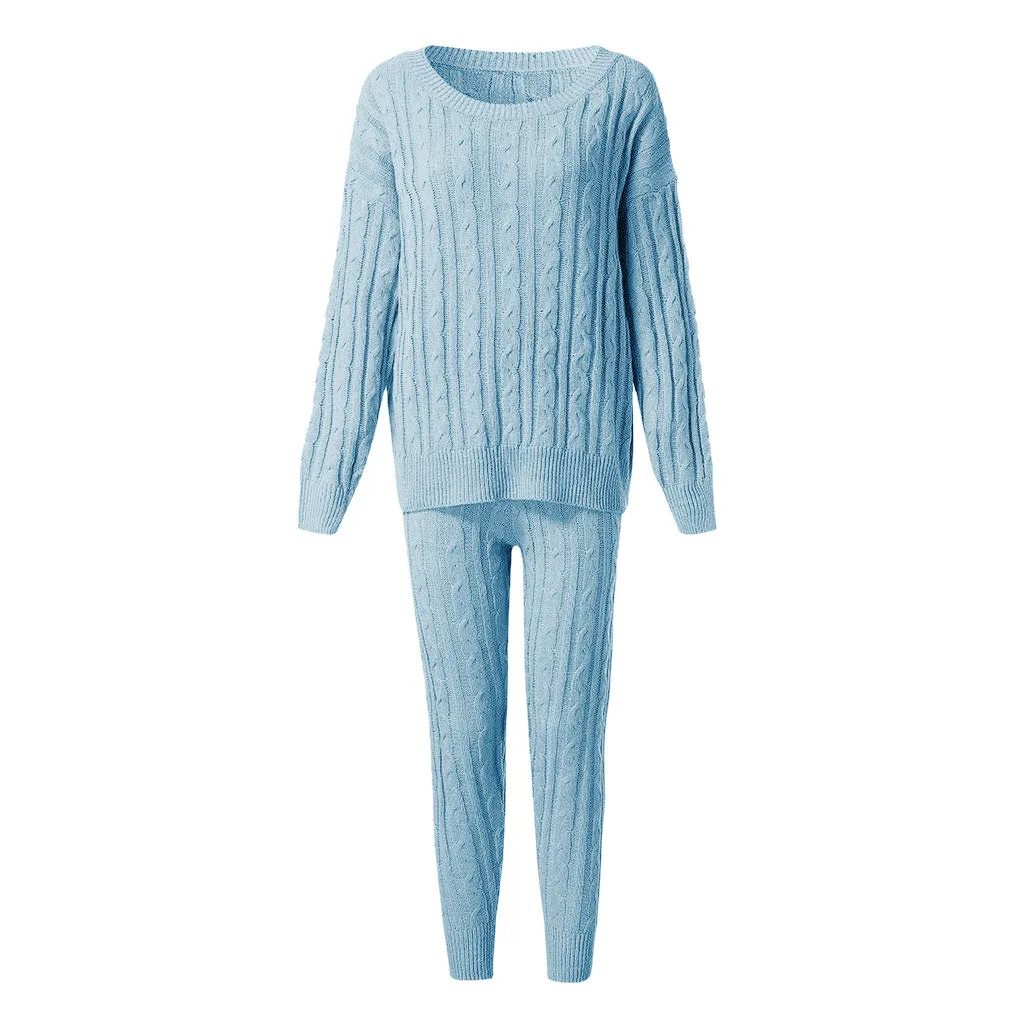 Номер моделиLadies Solid Round Neck Cable Knitted Warm 2PC Loungewear Suit Set
