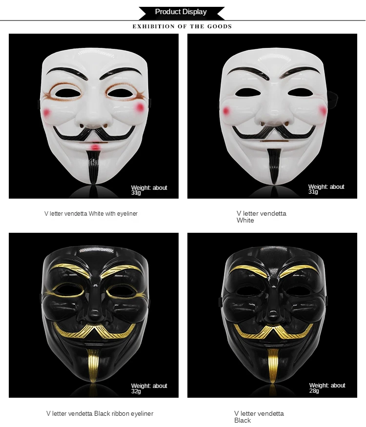 Анонимная маска Тема фильма маски для лица подарок для вечерние Маскировка искусственный Фильм Косплей V для Вендетта маска хакера