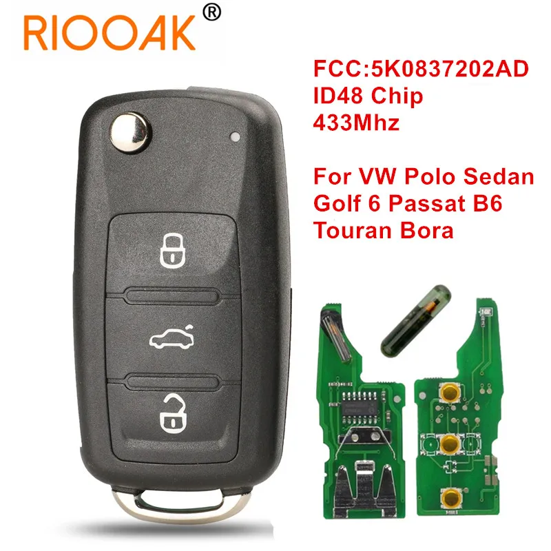 Автомобильный ключ с откидной крышкой 434 МГц ID48 чип с дистанционным управлением для VW Polo Sedan Golf 6 Passat B6 Volkswagen Touran Bora 5K0837202AD