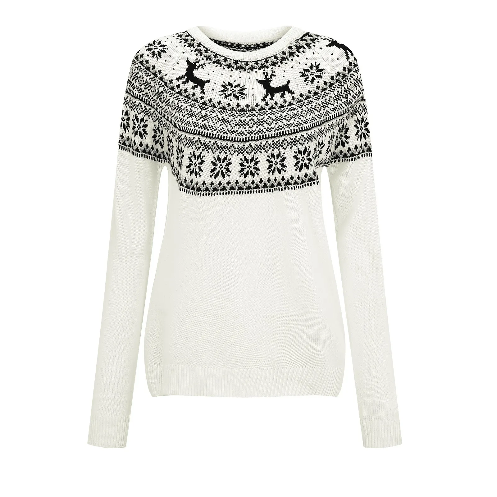 Свитер с рождественским принтом, пуловер, женские осенне-зимние вязаные Джемперы в виде снежинок и оленей, теплый ретро свитер с круглым вырезом, Джерси для женщин