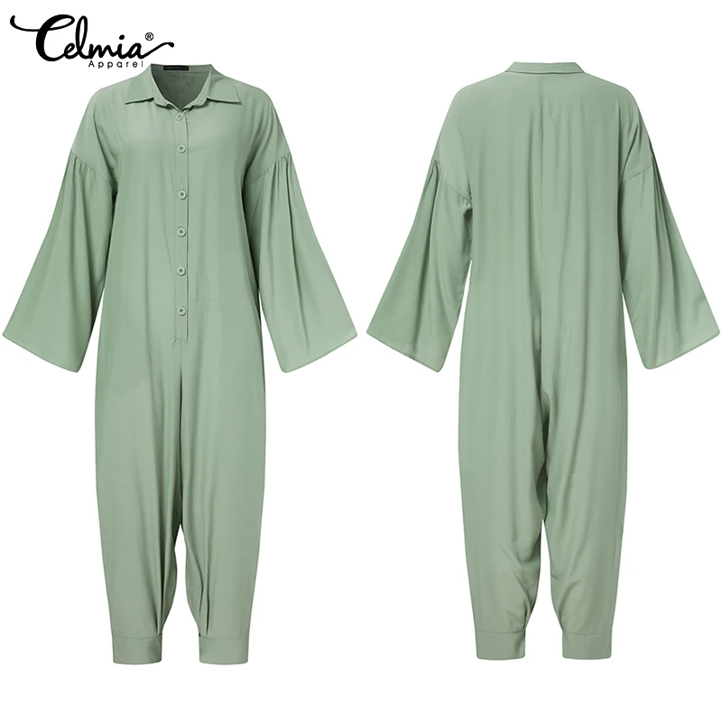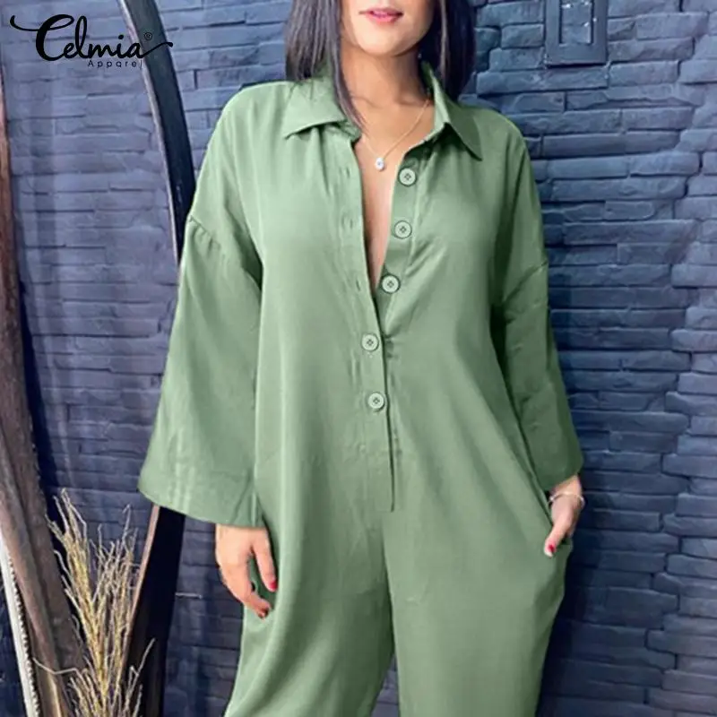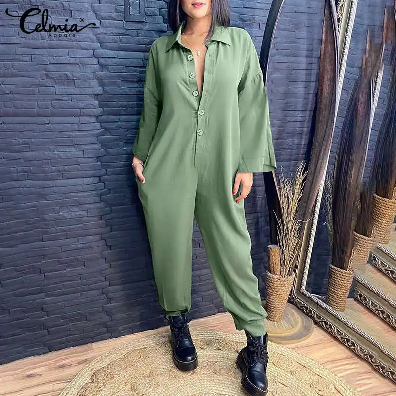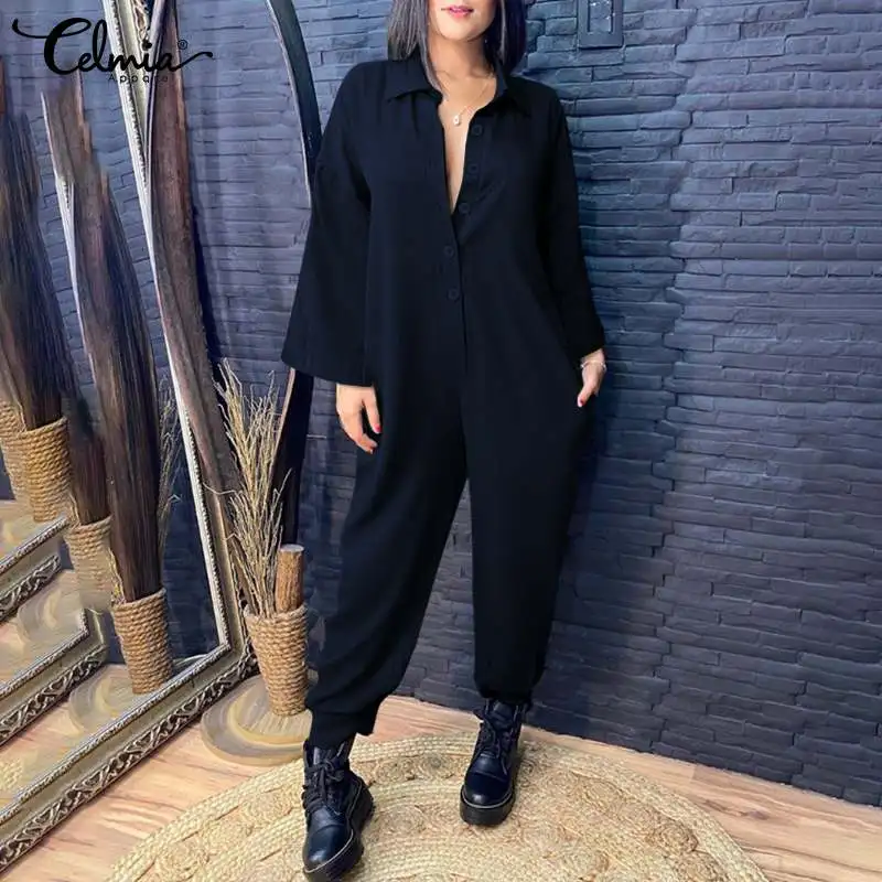 Женские Осенние Комбинезоны 2021 Celmia, Модные Винтажные повседневные свободные однотонные женские шаровары с длинным рукавом, уличная одежда