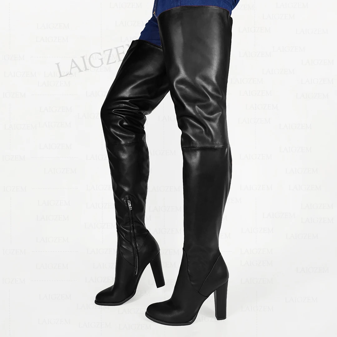 BERZIMERженские сапоги до бедра сапоги выше колена на толстом блочн...