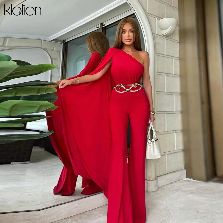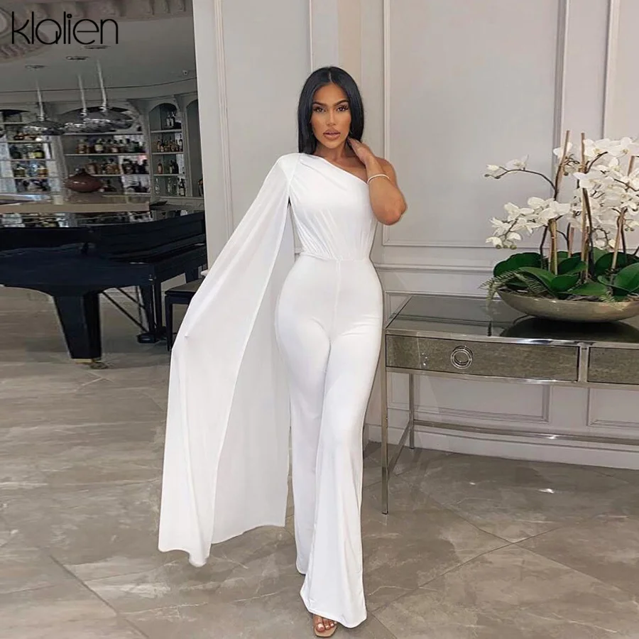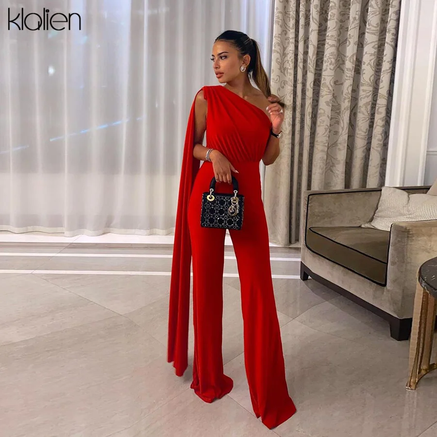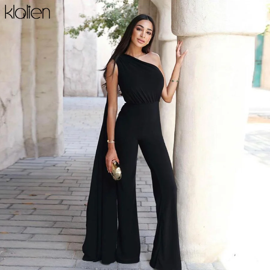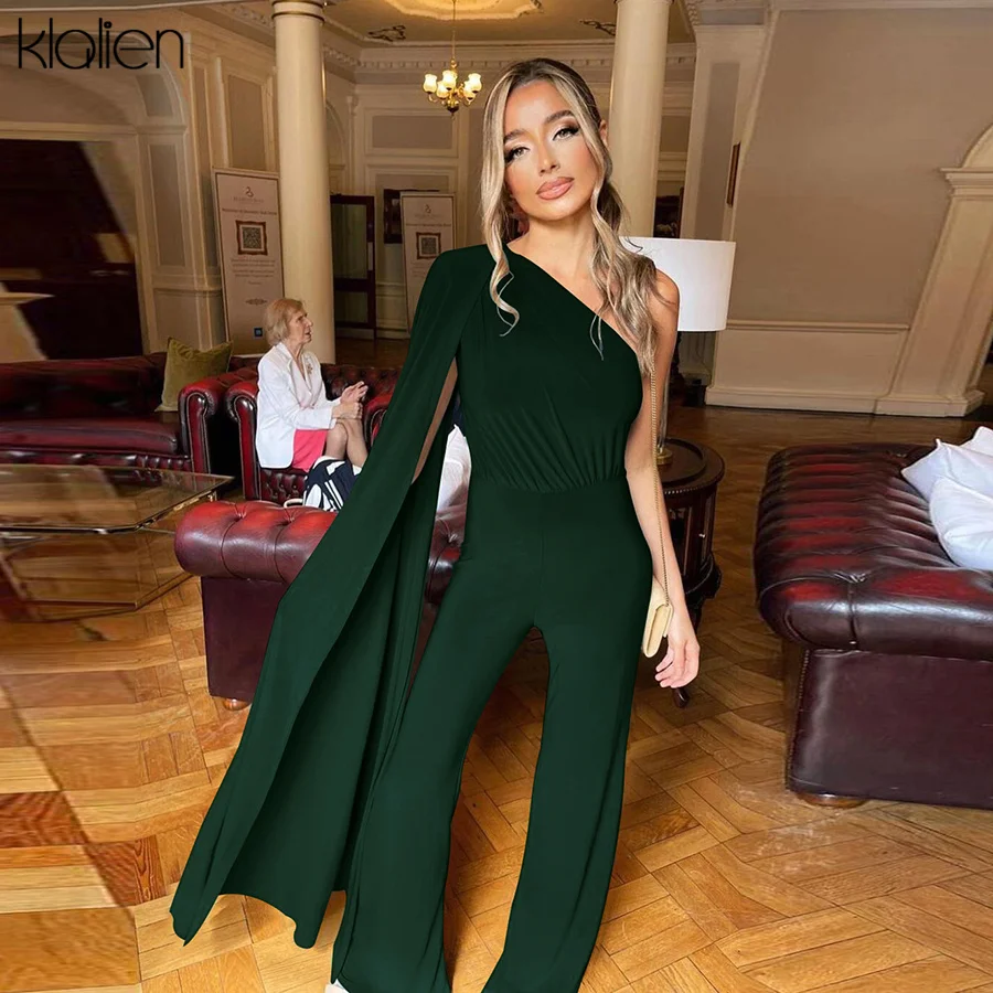 Модный повседневный однотонный тонкий комбинезон KLALIEN на одно плечо для женщин, простой элегантный офисный женский уличный комбинезон на осень, новый женский комбинезон