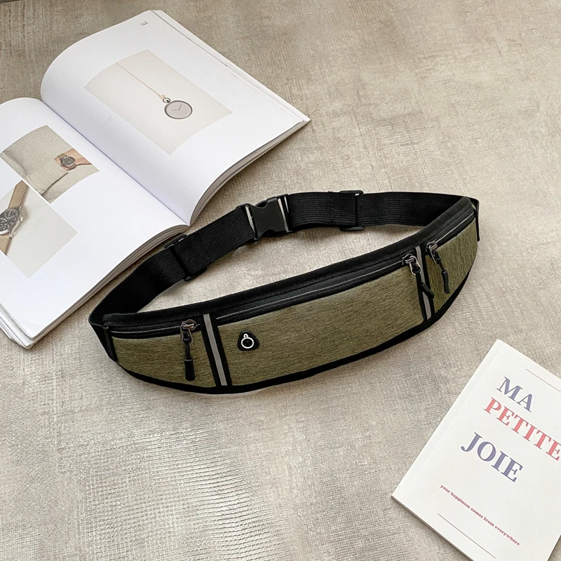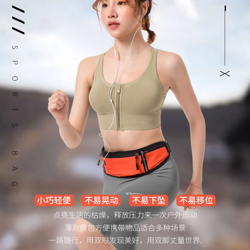 1. Дизайн многоугольного внешнего вида: тонкая спортивная поясная сумка, модный спортивный стиль, оснащен удобными тремя карманами на молнии, отверстием для наушников + светоотражающей полосой.