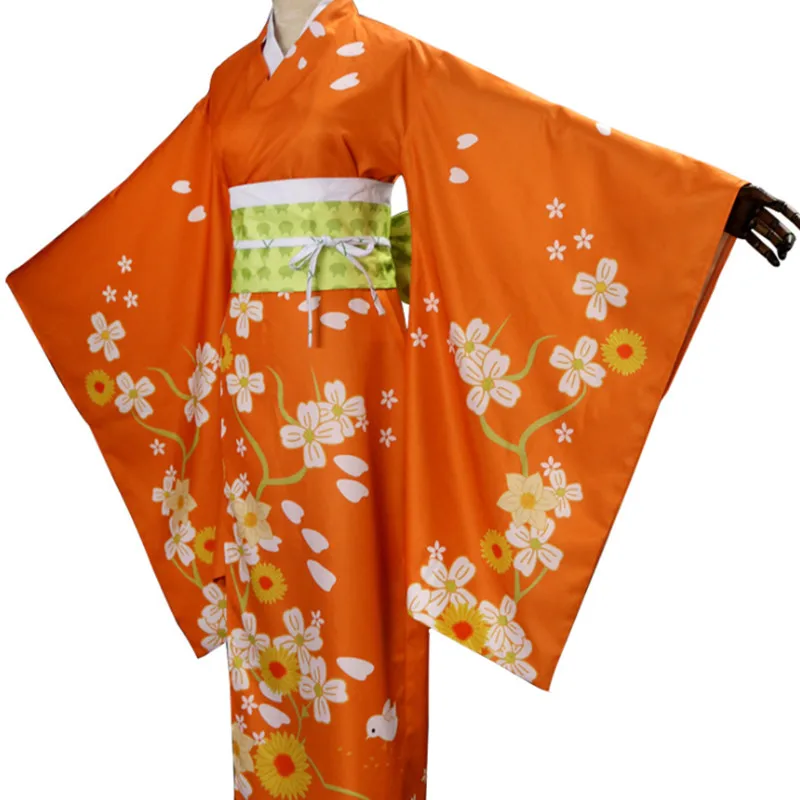 Аниме Супер данганронпа 2 Hiyoko кимоно Сайондзи Косплей Костюм для взрослых женщин оранжевое платье кимоно Одежда для Хэллоуина костум