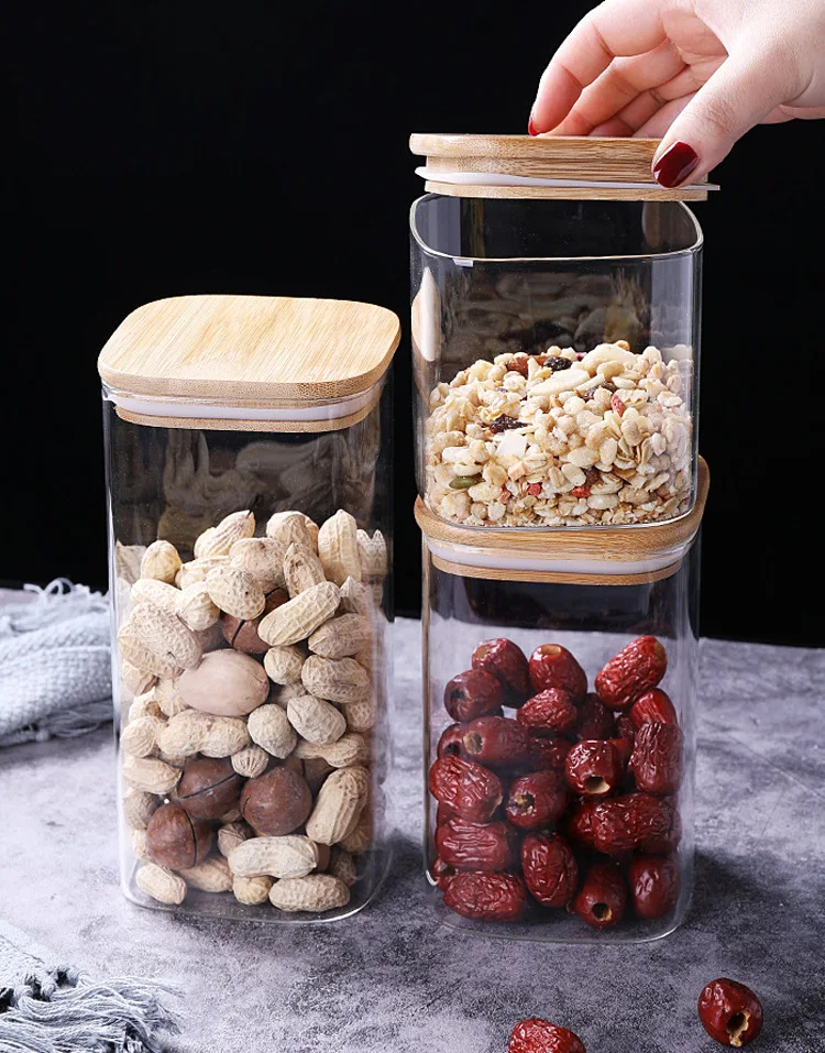 Новые стеклянные банки для специй, Кухонное хранение кофейных зерен, 1 шт., банка с крышкой, контейнер-органайзер для продуктов