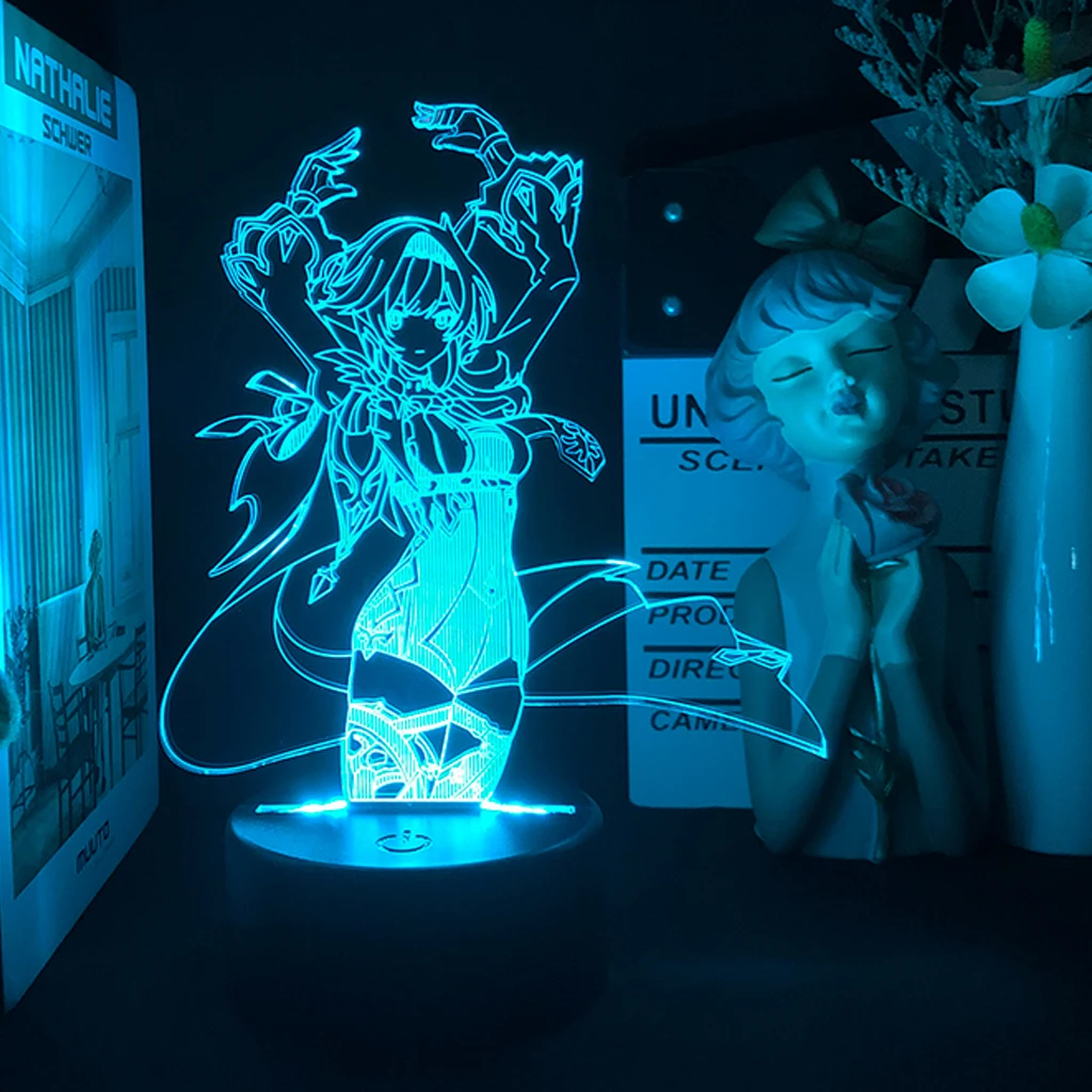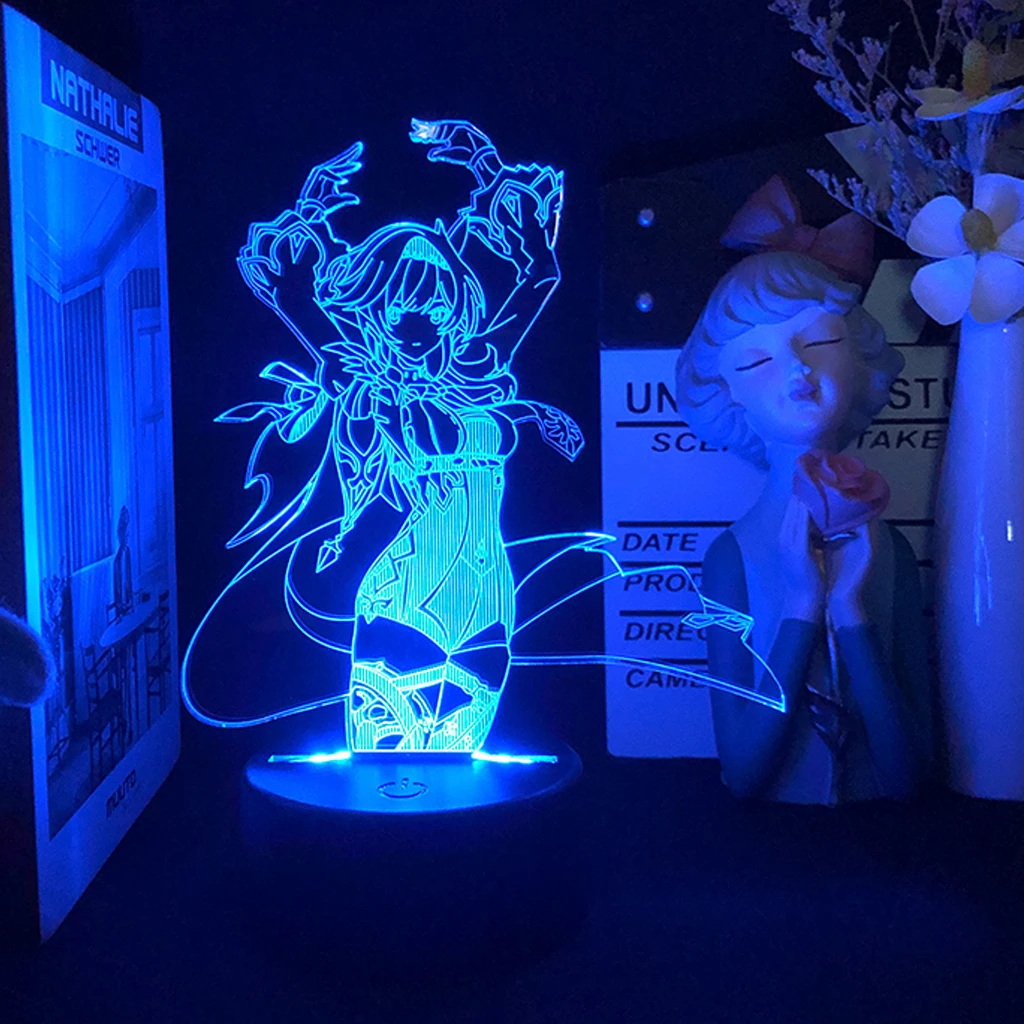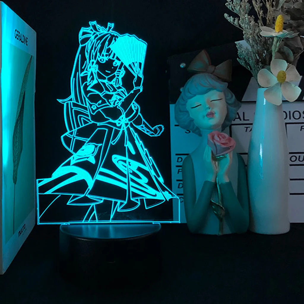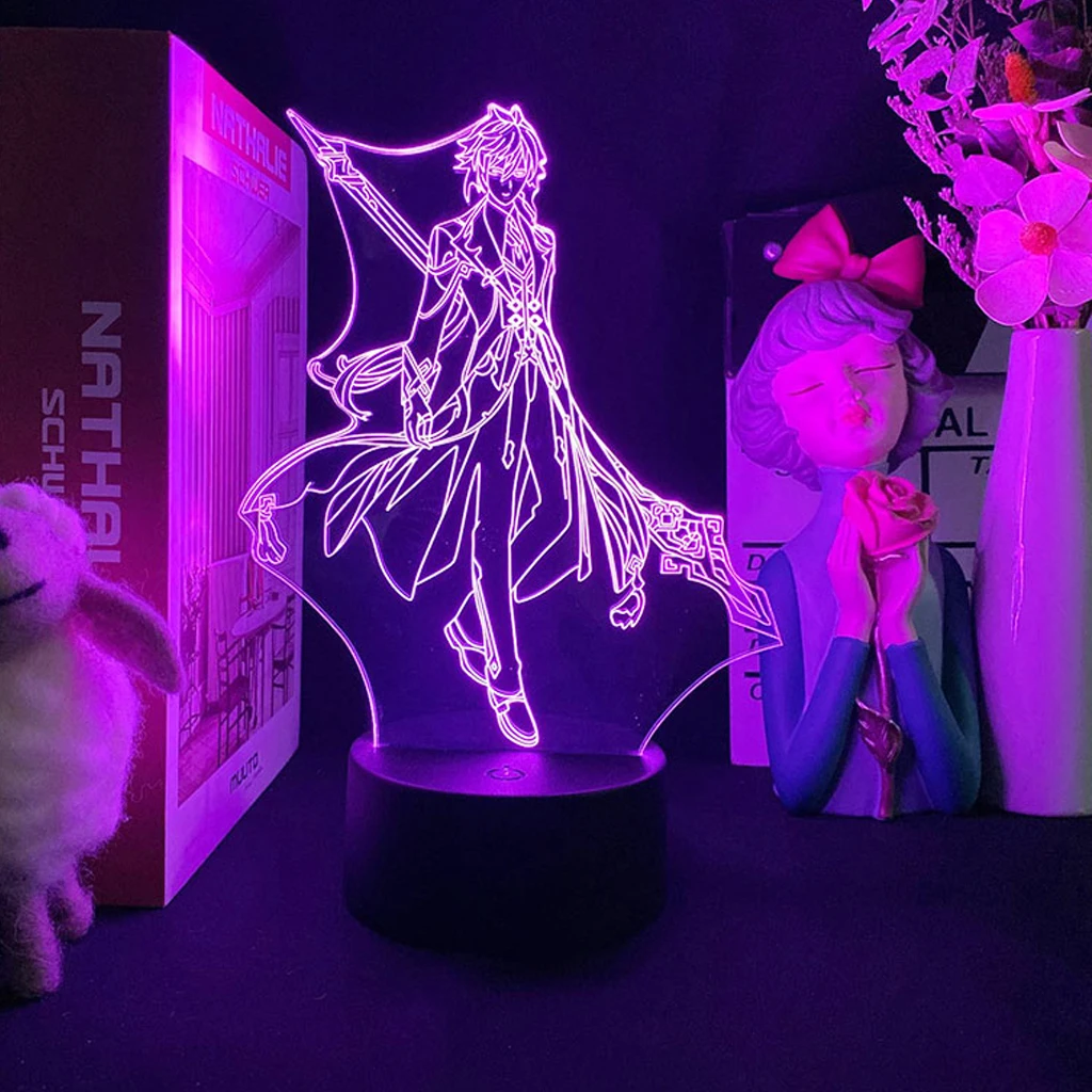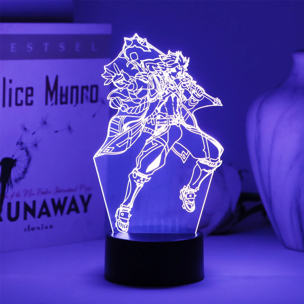 Ударная аниме Ночная подсветка Genshin, фигурка тартаглии, 3D Светодиодная лампа для декора комнаты, подарок можно комбинировать для покупки акриловой доски