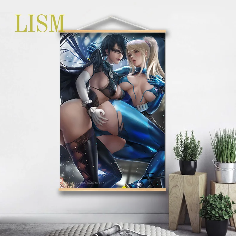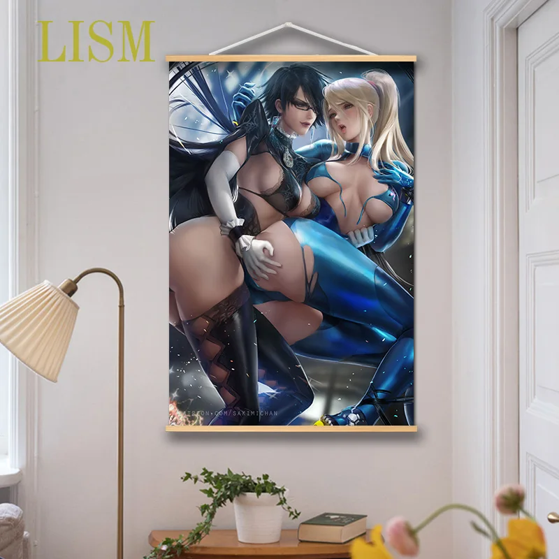 Настенный постер Bayonetta Samus Aran Аниме Манга, Свиток из массива дерева с рисунком на холсте