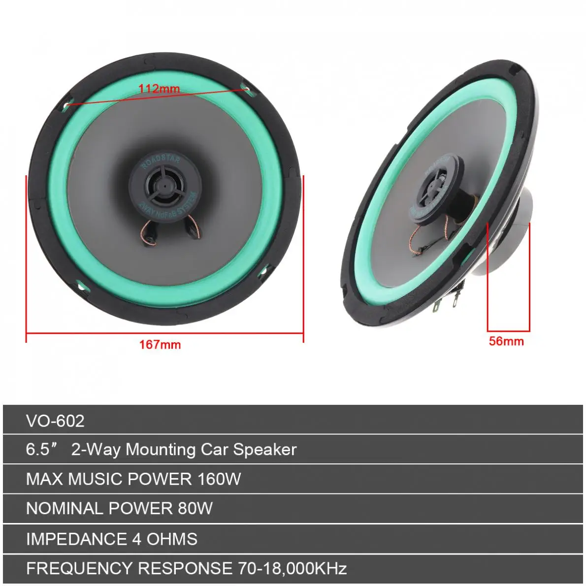 1 шт., автомобильная Коаксиальная Hi-Fi-колонка, 4 Ом, 6,5 дюйма, 160 Вт
