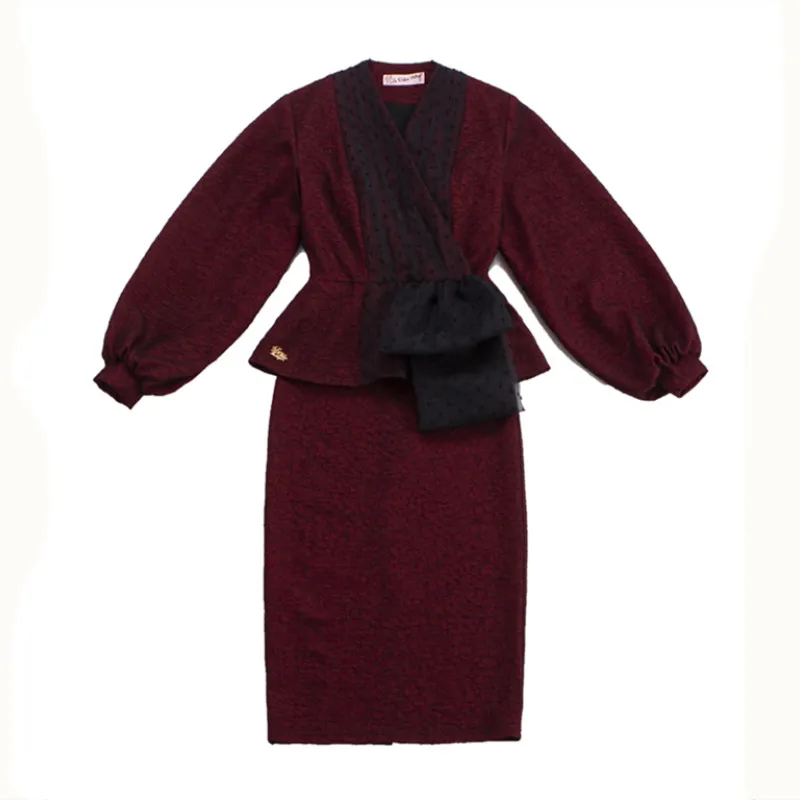 Le Palais винтажное 2021 осенне-зимнее Новое модное элегантное приталенное пальто сексуальное обтягивающее платье Женский комплект из двух предметов Офисная Леди