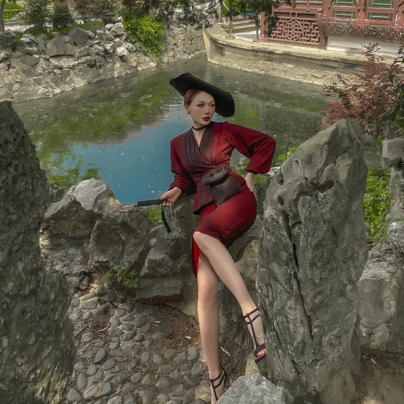 Женский винтажный комплект из двух предметов, пикантное облегающее платье с присборенной талией, Осень-зима 2021