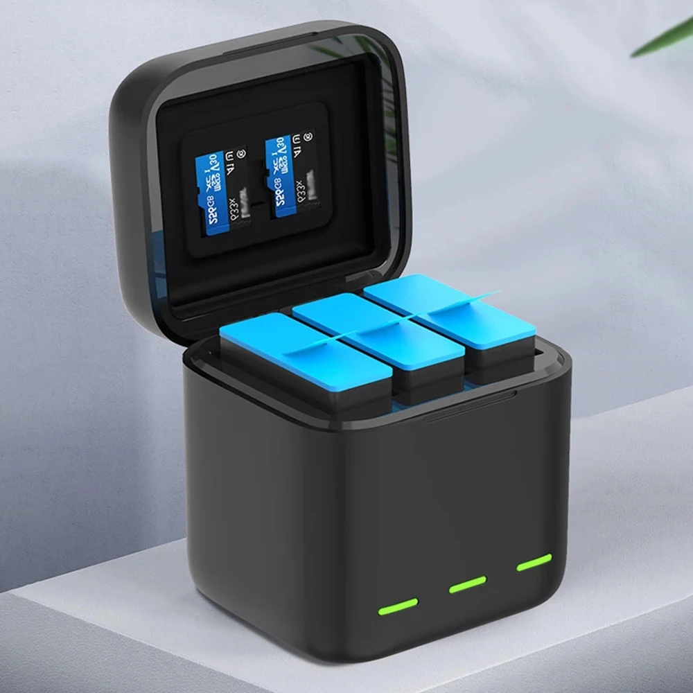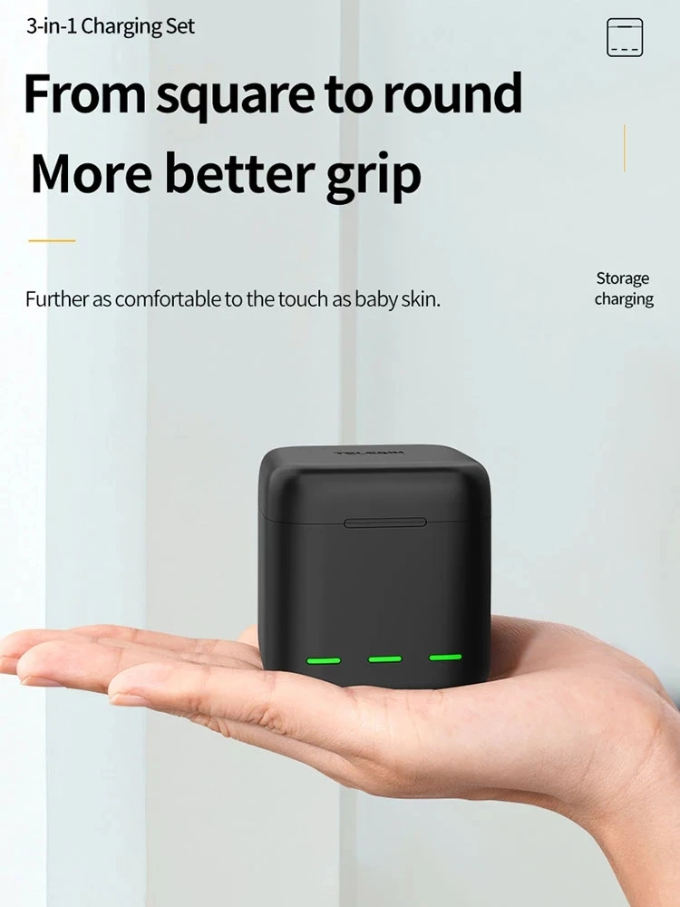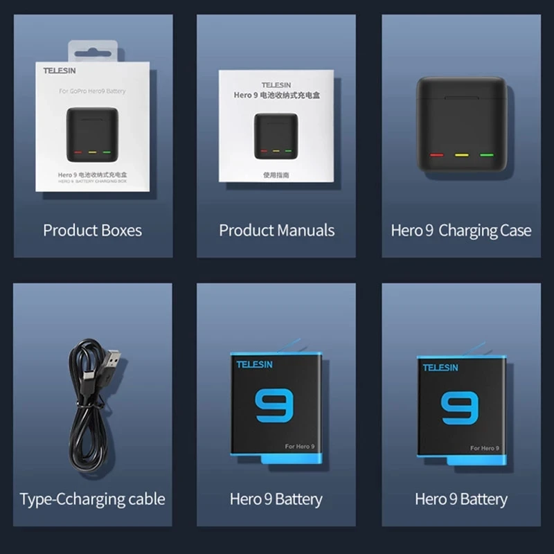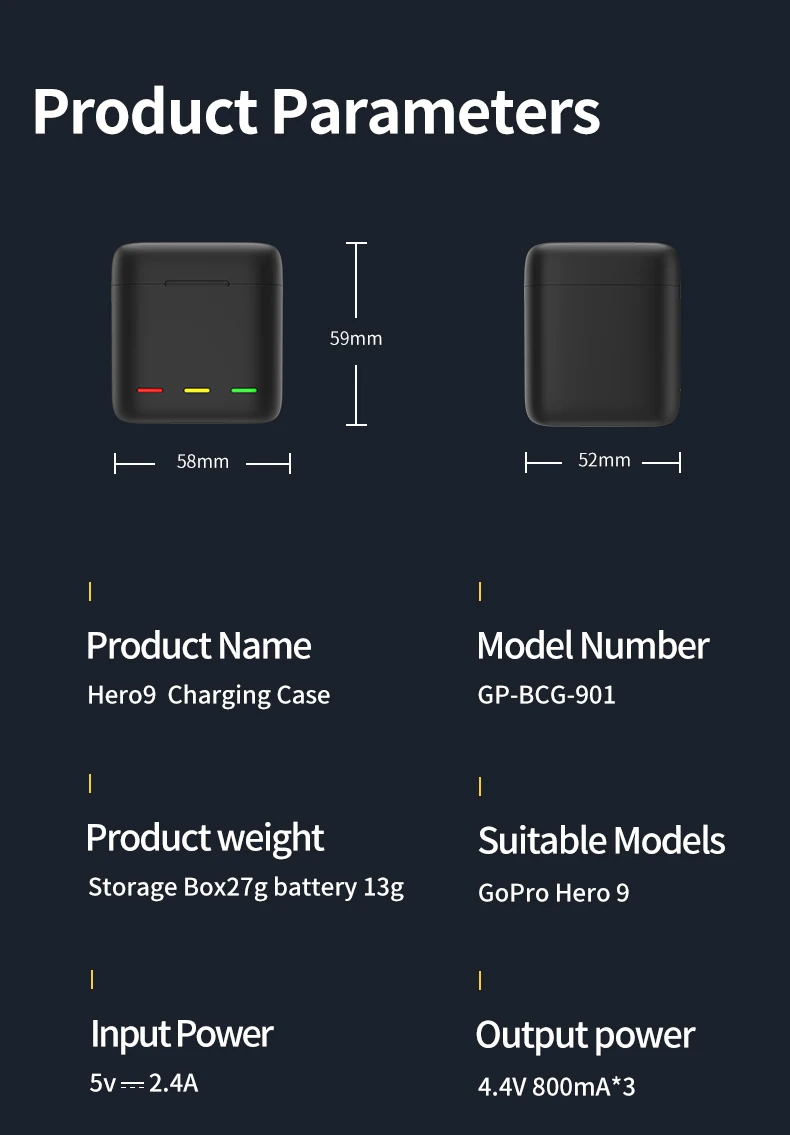 1. Большая емкость 1750 мАч, терка, чем Оригинальная батарея2. До 112 мин времени съемки на одной батарее (время использования отличается в разных режимах).3.100% идеально подходит для GoPro Hero 9 черного цвета, без всплывающих окон.4. Зарядное устройство от квадратного до круглого, более удобное на ощупь, как детская кожа.5. Девять защиты, использование с уверенностью, батарея и зарядное устройство безопасны.6. Три батареи во время зарядки и хранения, вмещает до двух tf-карт и трех батарей.7.2.4 большого тока, Полная зарядка занимает всего лишь 2,5 h.8. Силиконовый слот для карт, сохраняя при этом лучшую защиту.9. Магнитное открытие и закрытие, покрытие использует магнитное, простое, надежное управление.10. Противоскользящий силиконовый коврик, используйте в нижней части, чтобы избежать падения, больше безопасности.11. Интерфейс Type-c, поддержка передних и обратных вставок, не требуется адаптация кабелей.12. Четко отображенный, уточняющий состояние батареи, постоянно включается зеленый светильник, близкий к полноте желтый светильник остается на синем светильник дышит, Зарядка красный светильник остается на синем светильник дышит, В режиме ожидания всегда включен синий светильник.13. Легко помещается в рюкзак, не занимает много места.