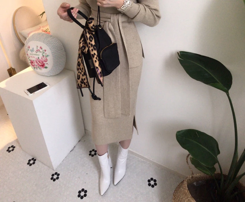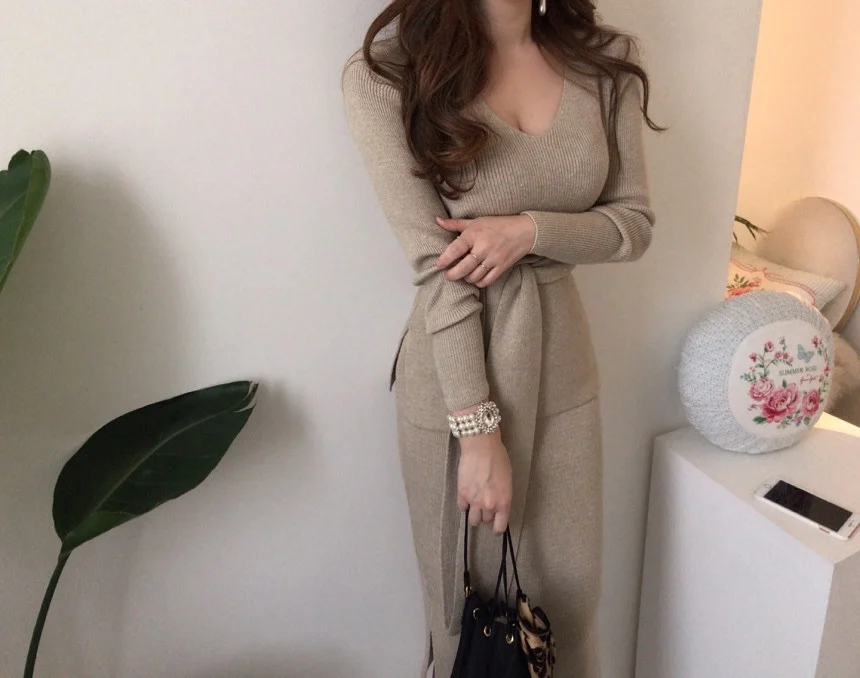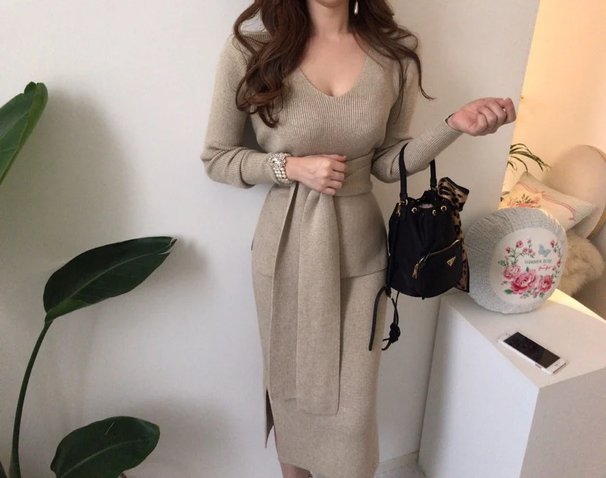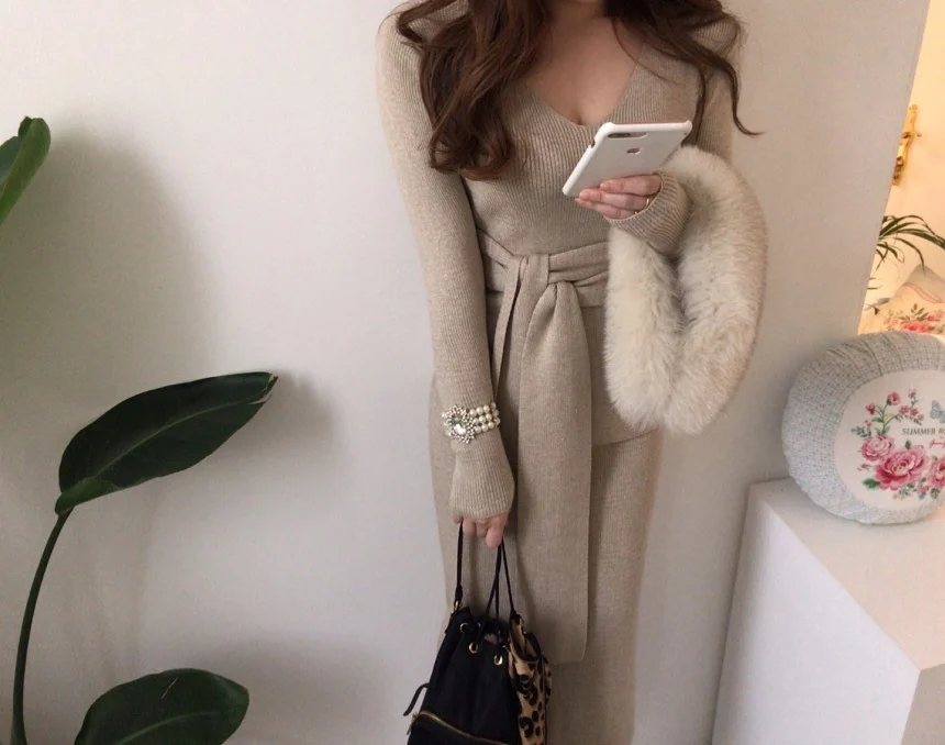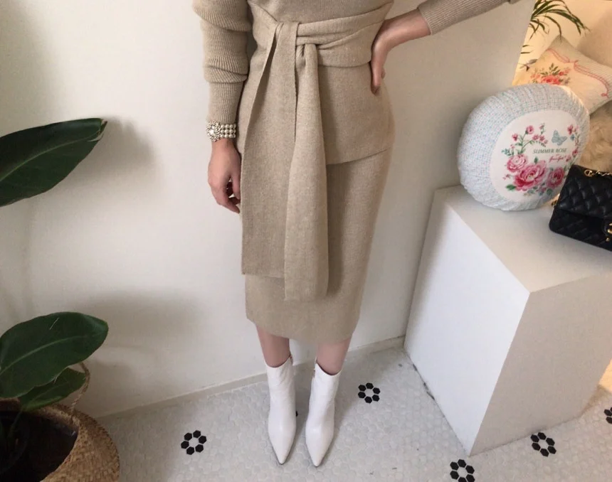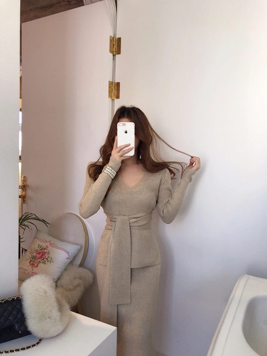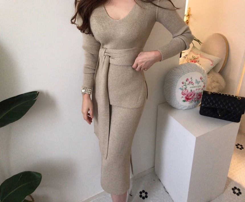 The sweater dress set quality is very good wool fabric soft warm effect good pattern design chic fine workmanship my height 164cm weight 61kg size standard wear very good looking recommended