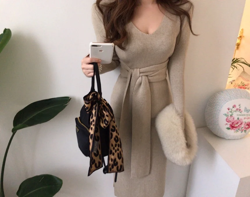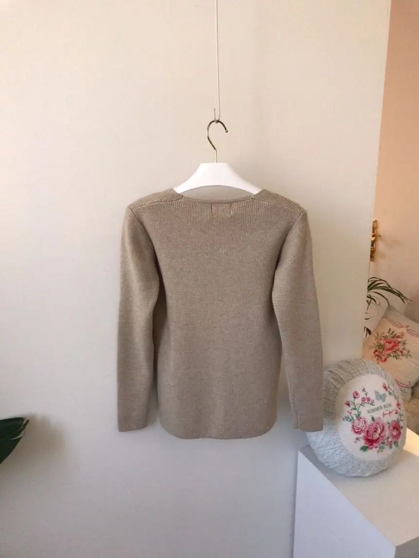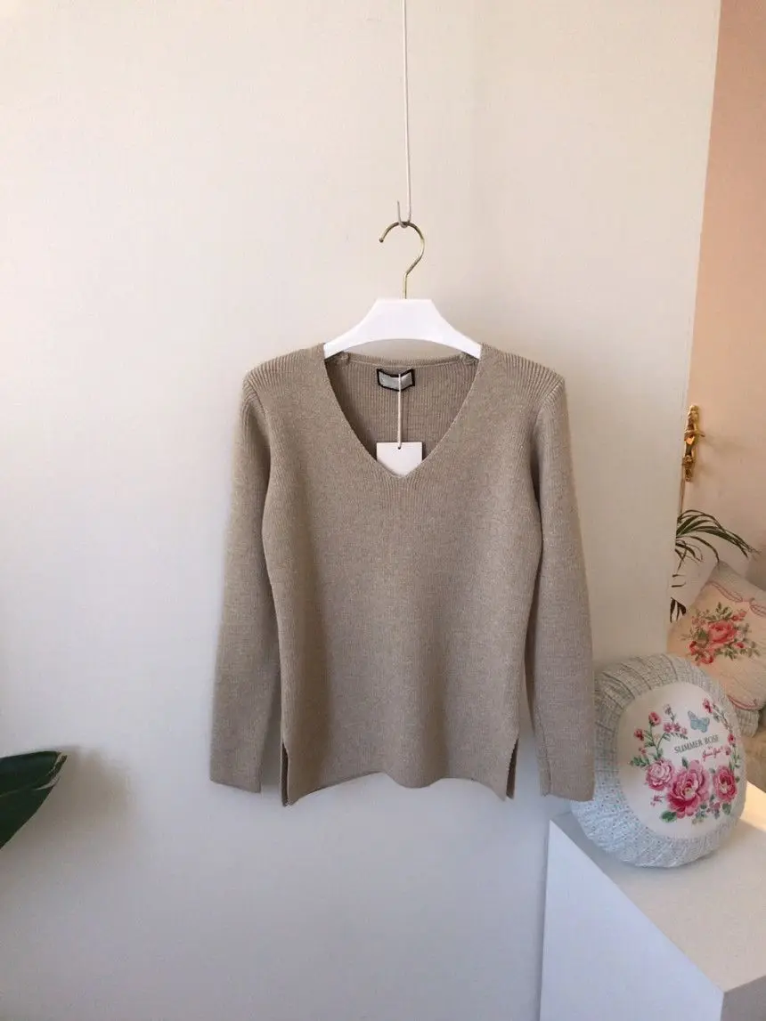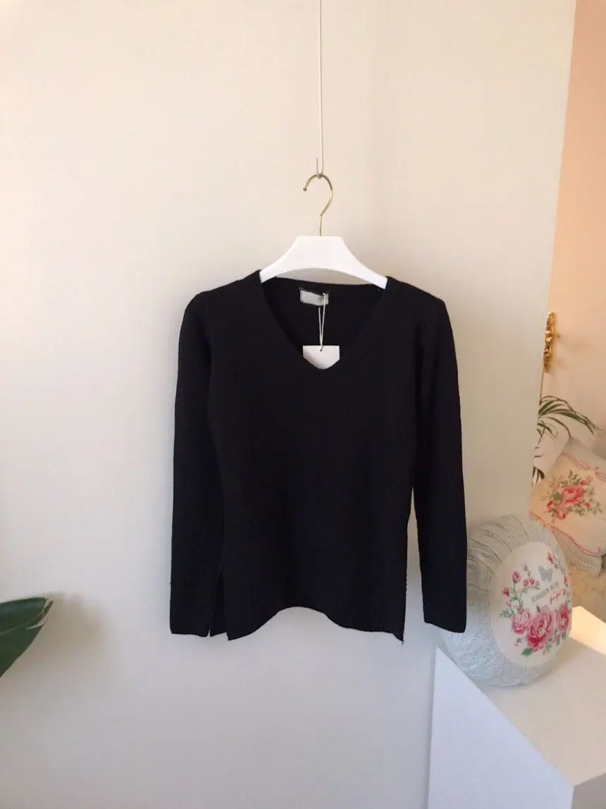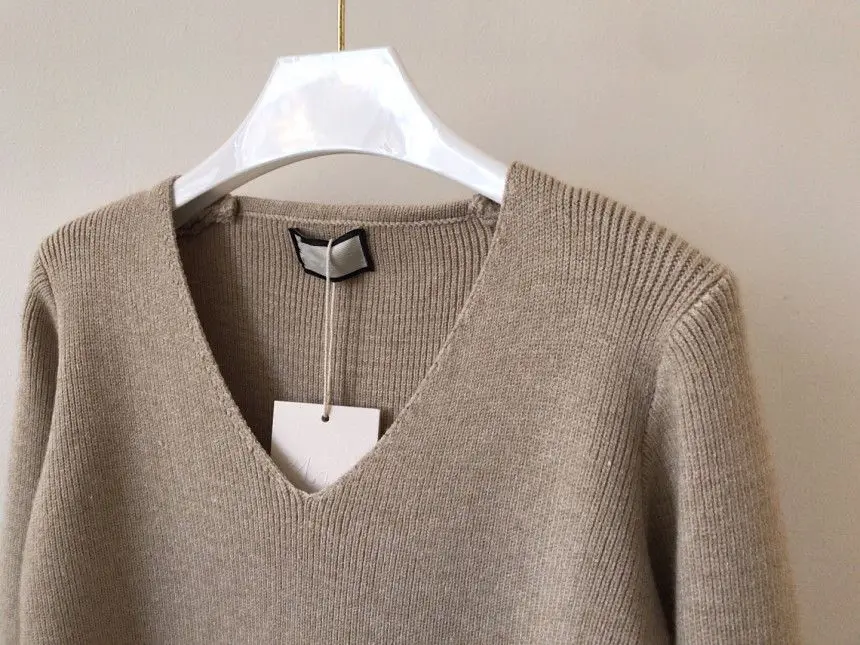 Женский шерстяной свитер с V-образным вырезом, длинным рукавом и высокой талией