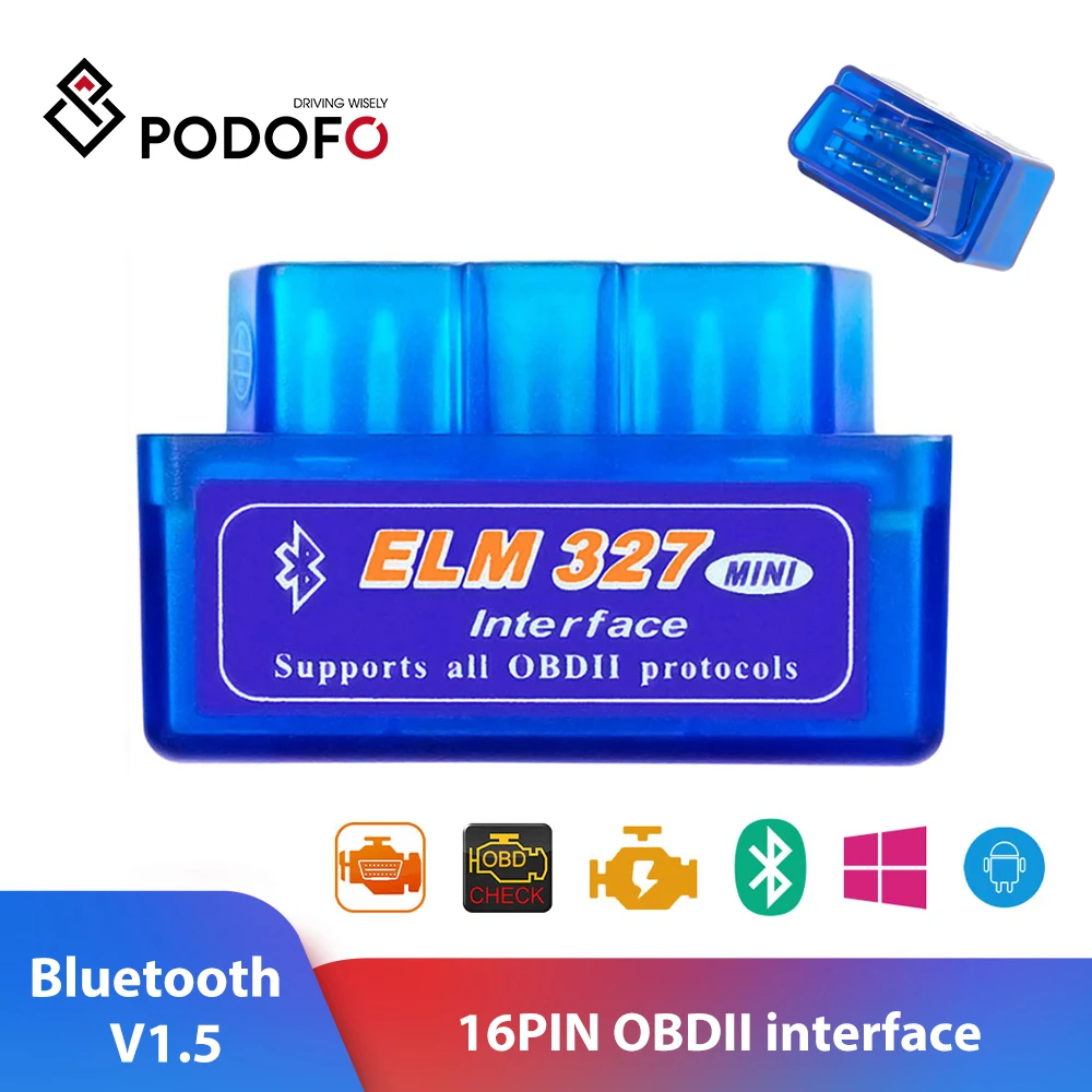 Считыватель кодов Podofo ELM327, Bluetooth V1.5, для Android, интерфейс OBD 2, сканер OBD2, супер мини поддерживает OBD II протоколы