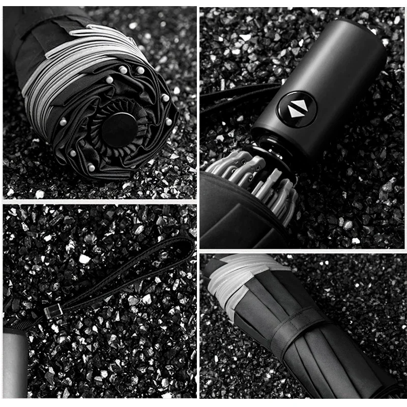 Автоматический неавтоматический Зонт Xiaomi 10 Ribs с отражающей полосой, с обратной светодиодной подсветкой, зонт, три складных перевернутого путешествия
