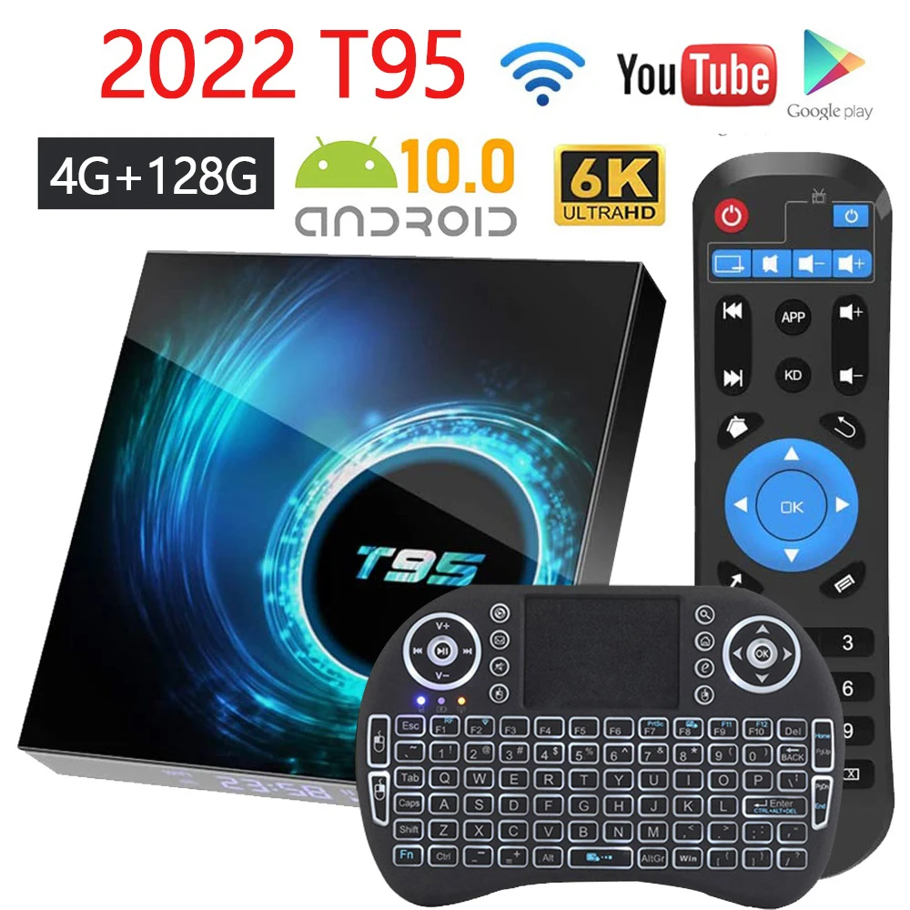 ТВ-приставка T95 Smart Tv, Android 10, 6k, 2022g и телефон, Wi-Fi, 2,4g, 3D Voice16g, 32 ГБ, 64 ГБ, 4k, четырехъядерный процессор, ТВ-приставка, медиаплеер, новинка 128
