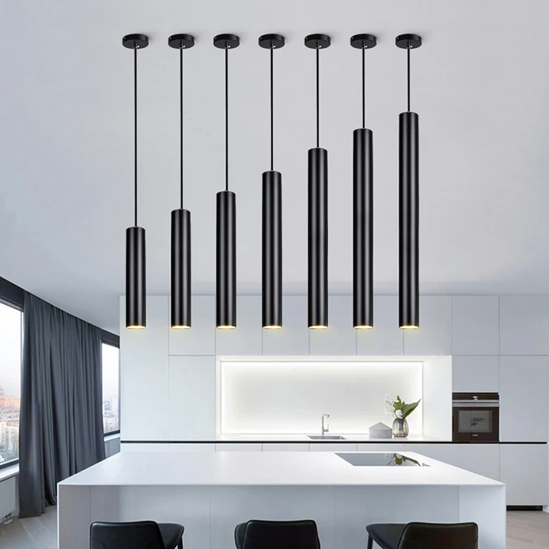 Цилиндрические светодиодные подвесные светильники с регулируемой яркостью, длинные трубчатые светильники для кухни, столовой, магазина, бара, декоративный шнур, подвесной светильник, фоновое освещение