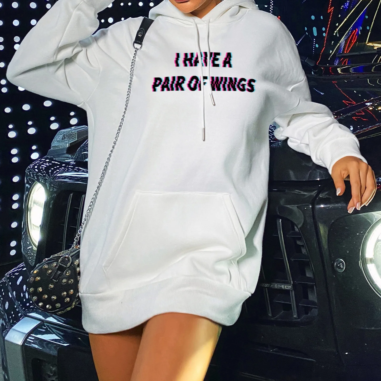 Толстовка Женская свободного кроя, длинный толстый свитшот с надписью ангельские крылья, белый Повседневный свитшот в стиле панк, пальто