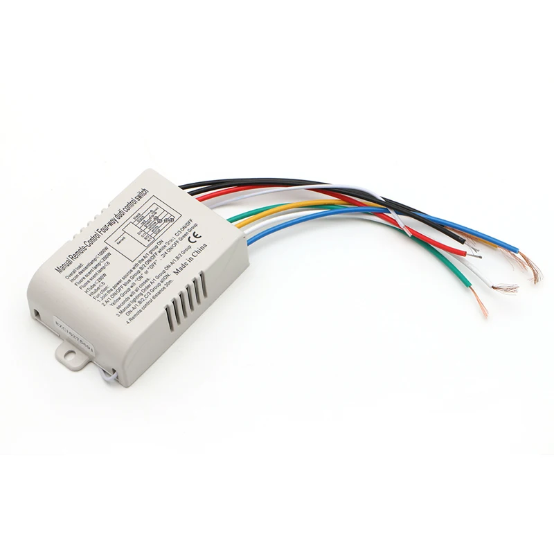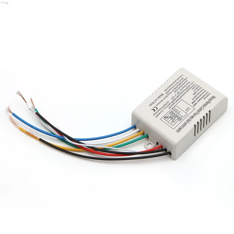 100% brand new and high qualityMaterial: PlasticColor: WhiteFeatures:1. 4 ways ON-OFF Digital Intelligent Wireless Remote Control Switch.2. Suitable for droplight, crystal lamp, modern low-pressure lamp, absorb dome light, day flower lamp, fluorescent lamp, energy-saving lamps, exhaust fan, etc.3. It can be used in household, stairs, corridor, washroom, toilet, workshop, warehouse, garage, factory lighting, etc.4. Fast and easy to install, not obstructed by walls, capable of connecting any loads.5. Remote controller and switch can be used simultaneously for ease and flexibility.6. Stable signal receiving, 8 wires to hook up.7. 1 x 12V 23A battery (not included) is needed for the remote control switch.Specifications:2. Input: AC200V-240V 50Hz/60Hz3. Launch battery: 12V 23A(not included)(not included)4. Load Power:Resistive load: maximum output power of single set is within 1000W(such as common incandescent light bulb, the light bulb);Inductive load: maximum output power of single set is within 360W(like light with ballast: energy saving light, bracket lamp, absorb dome light)5. Remote control distance: about 8-15meters indoor, over 20m outdoor.6. Working Frequency: 315MHZ.Size: 7.5*5.4*2.4cm/2.95"*2.13*9.94"No retail PackageQuantity:1 PccNote: Due to the difference between different monitors, the picture may not reflect the actual color of the item. Thank you!