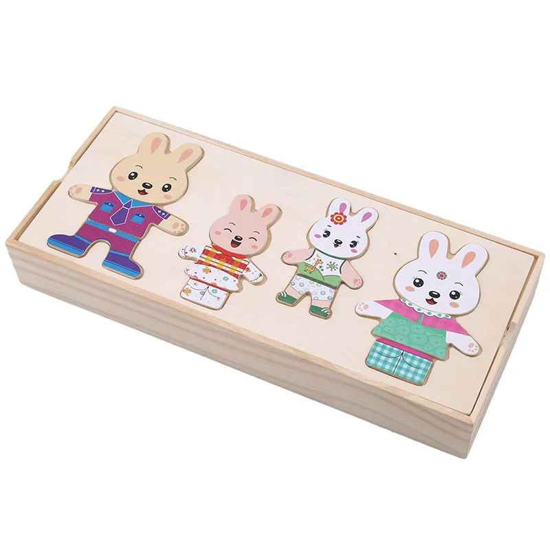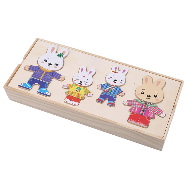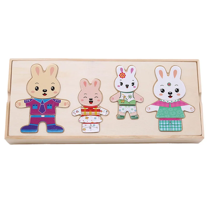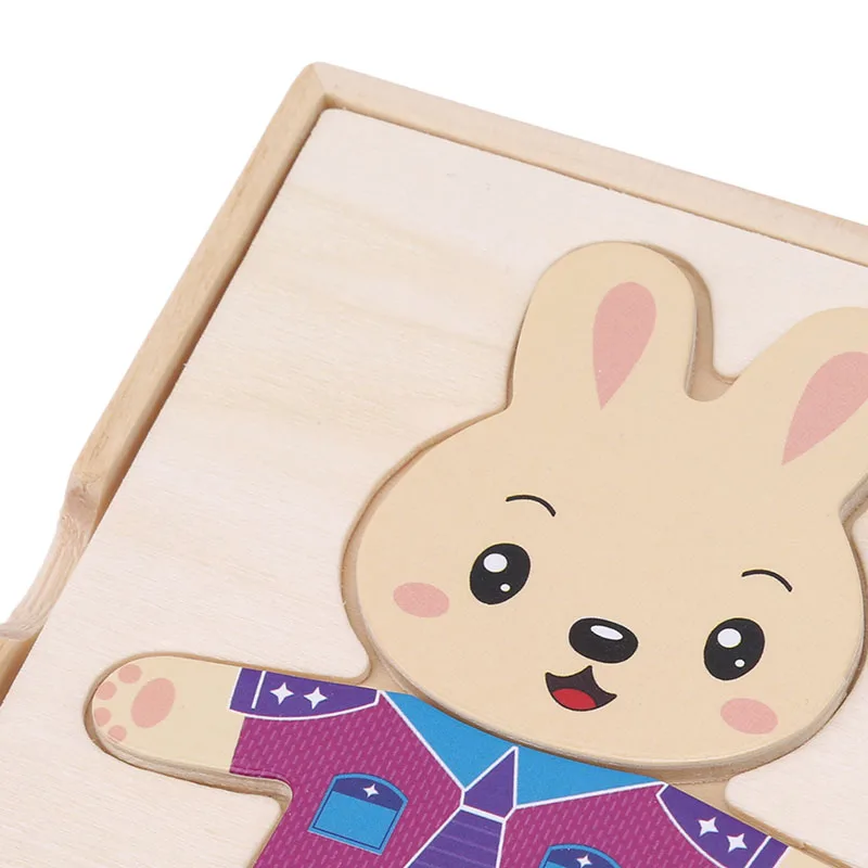 Деревянная игрушка кролик изменить одежду Пазлы Монтессори образова...