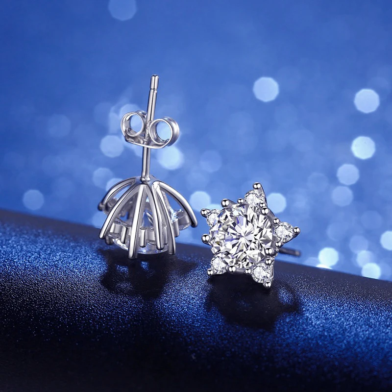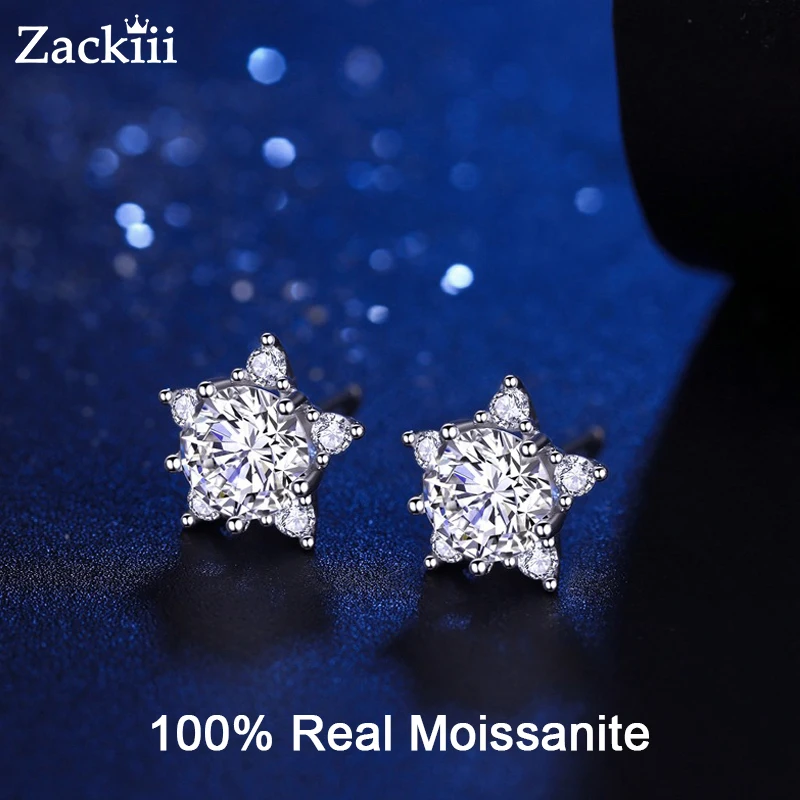Настоящий Муассанит серьги-гвоздики в виде цветка 1ct 2ct Снежинка Алмаз серьги для женщин и девочек вечерние обещание подарок на день рождения, хорошее ювелирное изделие