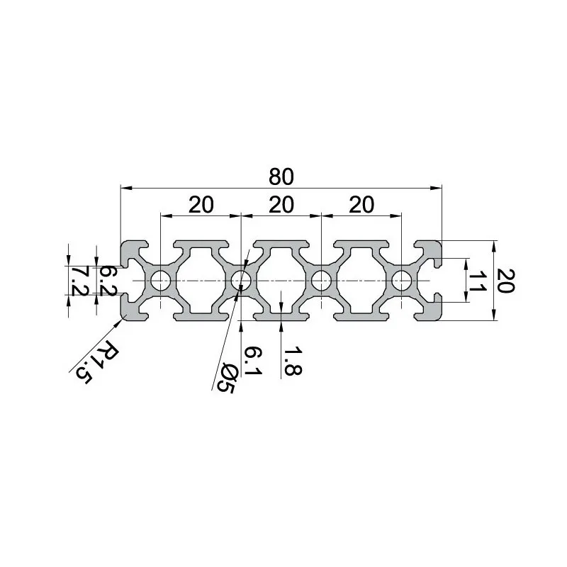 2 шт., алюминиевые профили 2080, Т-образный слот, европейский стандарт, анодированная Экструзионная линейная направляющая 300, 500, 1000, 1200 мм, 2080, детали для 3D-принтера с ЧПУ
