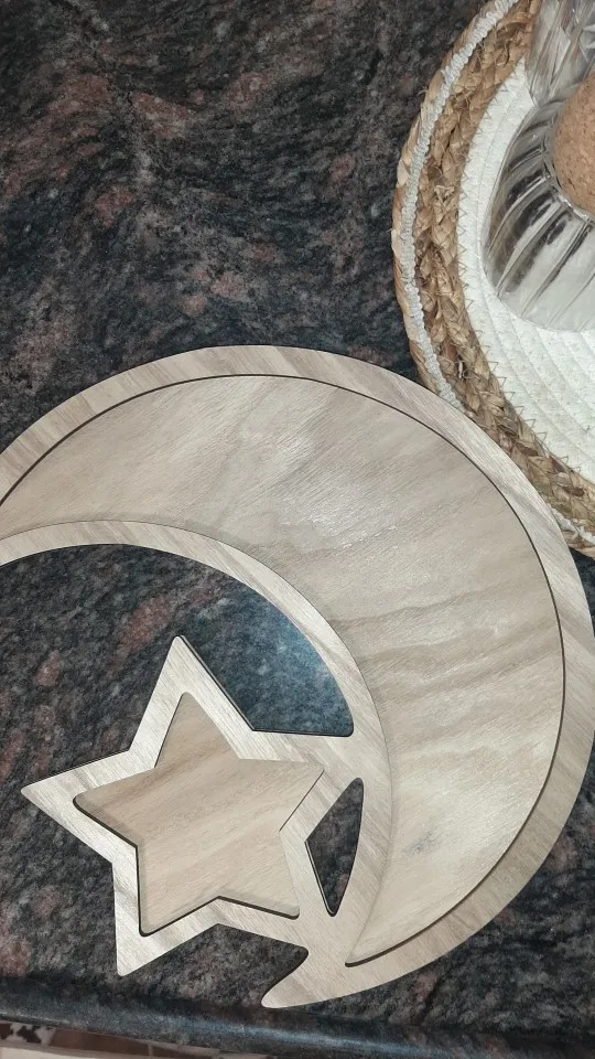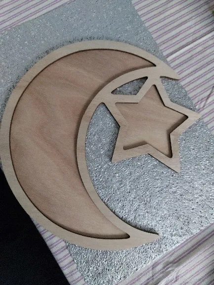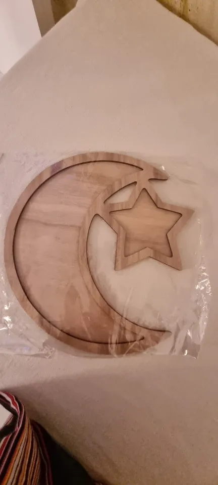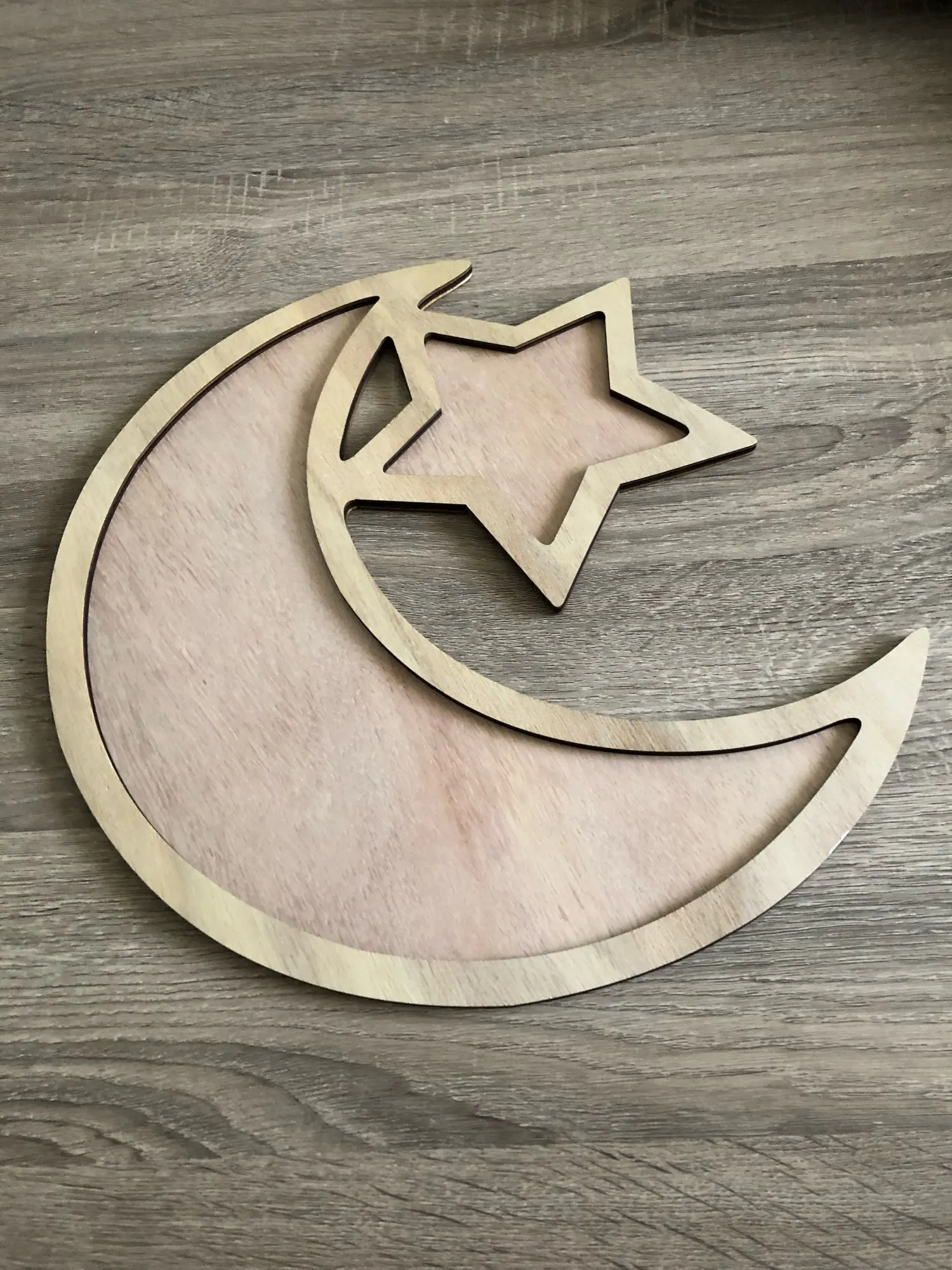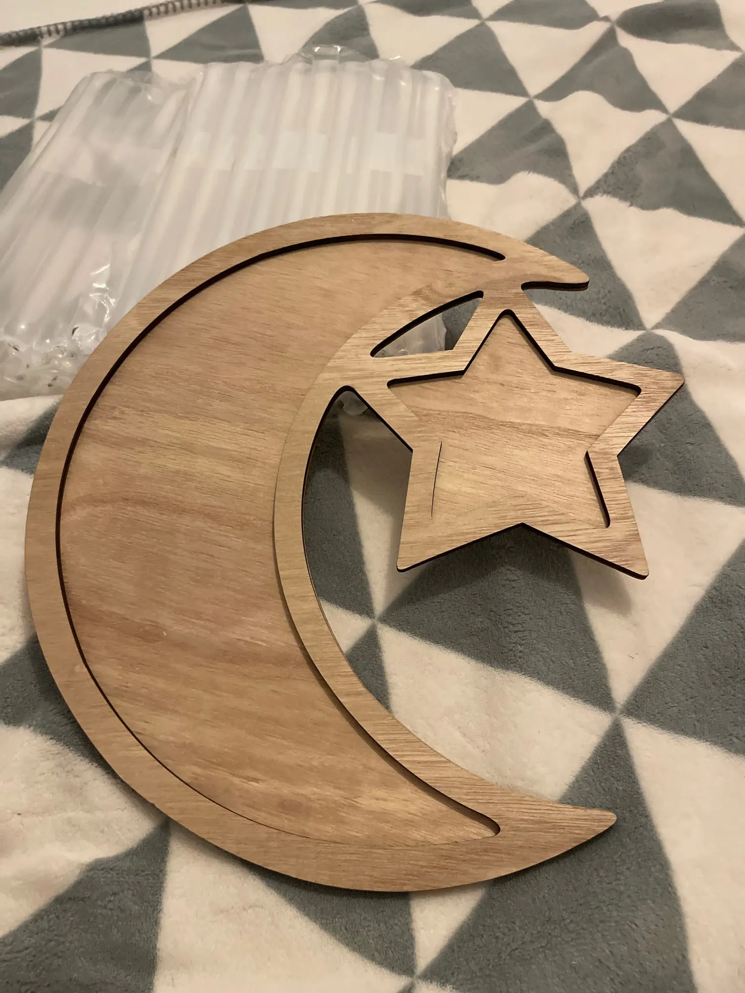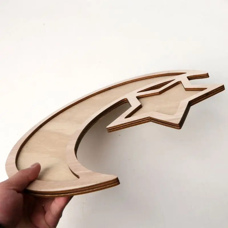 Деревенский деревянный поднос в форме полумесяца для вечерние Рамадан сервировочная посуда Десерт кондитерский поднос демонстрационный держатель декоративное украшение