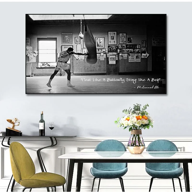 Черно-белый плакат боксеры ударная сумка фотопечать Холст Картина Мохаммед Али слова плакат тренажерный зал украшение для дома