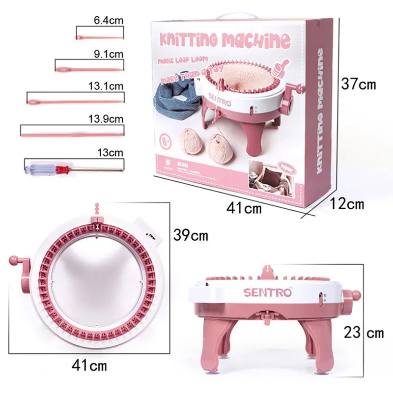 Название продукта: вязальная машина для шерсти с 48 игламиРазмер изделия: 40,5*37,5*22 смЦвет продукта: розовыйФункции продукта: плетение шарфов, головных уборов для взрослых, носков, одежды, брюк, тыкв и т. д.ПримечаниеИз-за измерения вручную допускается небольшое отклонение в размере.Из-за влияния светильник и яркости дисплея возможны различия светильник щенииМежду тоном фотографии и реальным проектом.