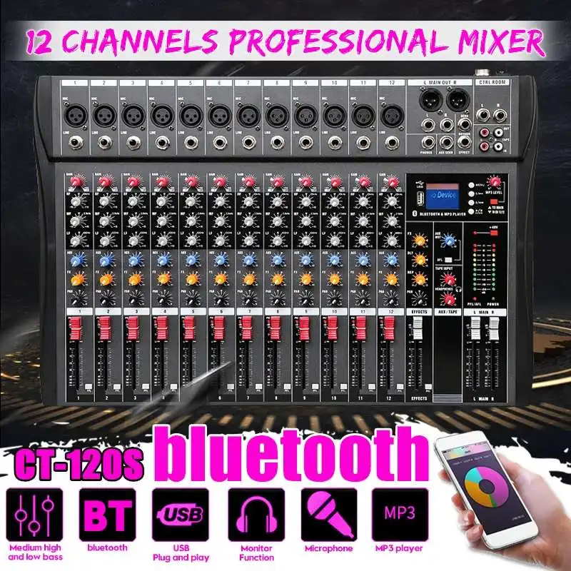 12 каналов Live Studio Audio микшер 48 в усилитель профессиональный USB смешивание bluetooth стерео звук смешивание консоль DJ микшер панель