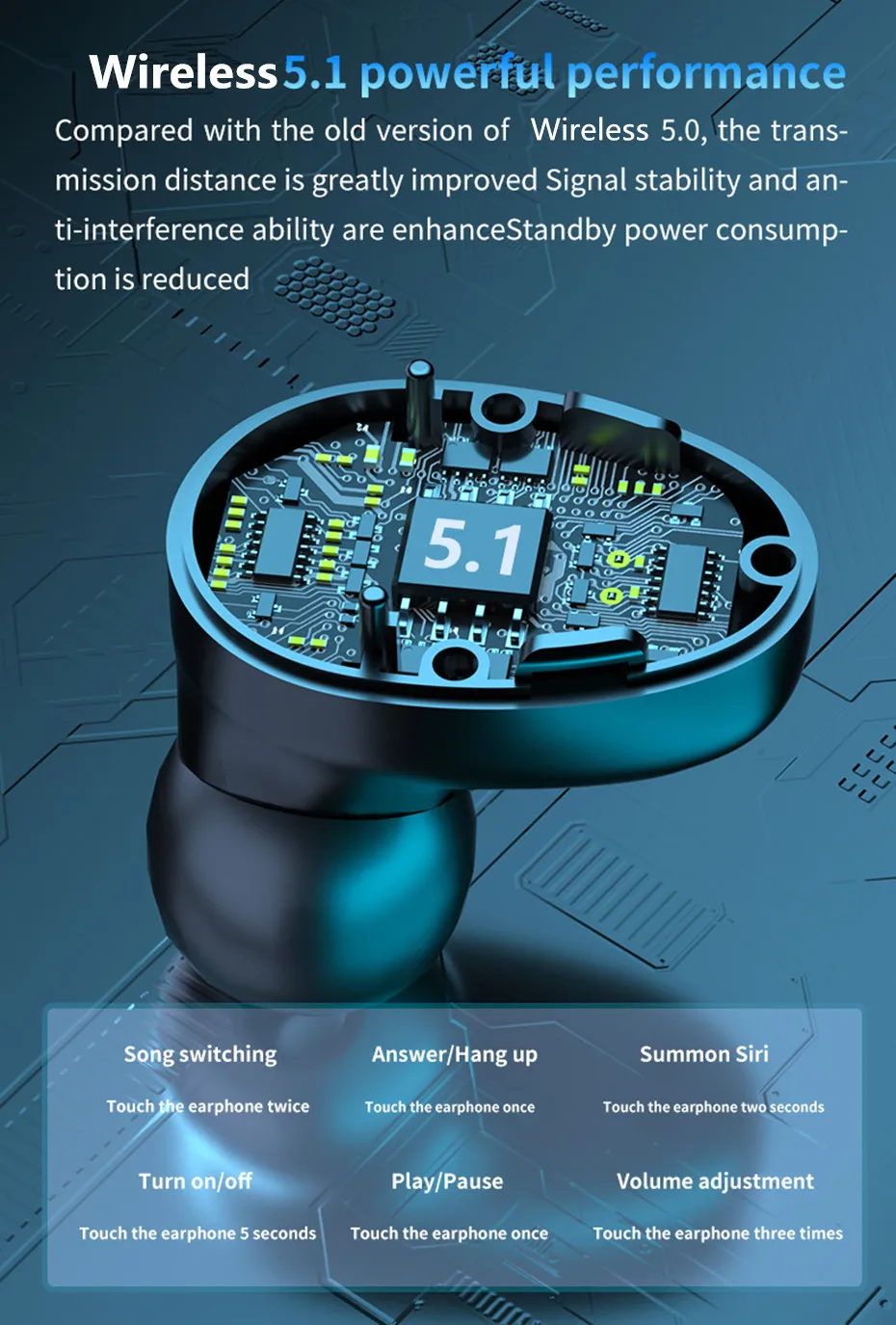 TWS Bluetooth-совместимые 5,1 наушники беспроводные наушники стерео спортивные наушники мини-наушники со светодиодным фонариком