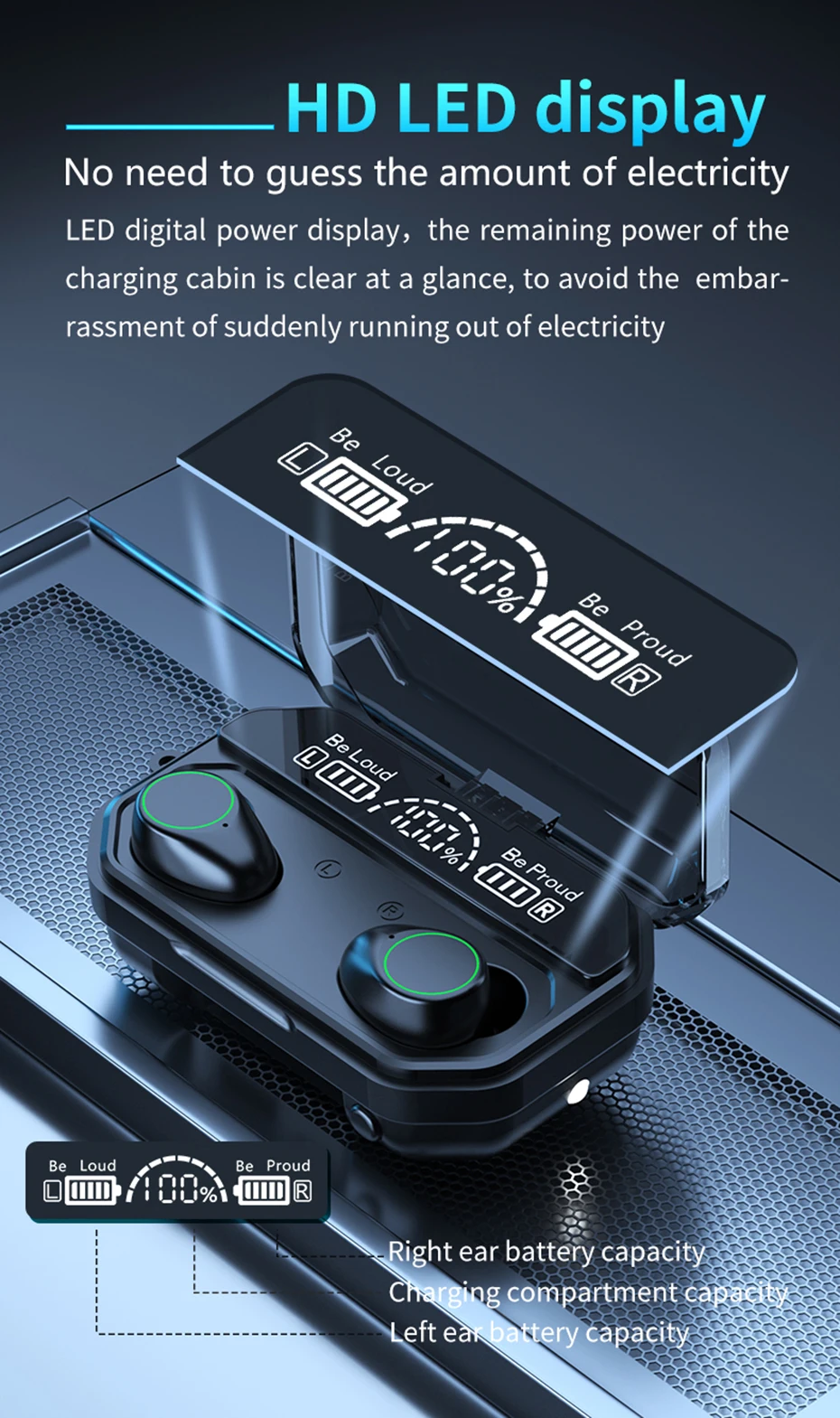 Рекомендуется владельцем магазинаНовое поколение Bluetooth совместимым гарнитураВам не нужно задавать вопросы, доступен ли мобильный телефон XXX. Он может быть использован для любого мобильного телефона, который поддерживает Bluetooth, независимо от бренда и режима* Экстремальное издание мощное обновление1. Обновленный светодиодный дисплей питания:Интуитивно понятный для того чтобы знать уровень электричества oCharging кабина и гарнитура с первого взгляда2. Обновление чипа: Обновите Bluetooth чип 5,0, выберите автоматическую загрузку и соответствие3. Обновление операционной функции: одно касание toswitch Предыдущая/следующая песня и регулятор громкости up assistant4. Зарядная кабина большой емкости: Может использоваться для хранения наушников, зарядка для наушников/мобильного телефона в качестве держателя мобильного телефона5. Наслаждайтесь и 9D тяжелыми басами: Наслаждайтесь HIFI sceneand enioy иммерсивным 9D стерео эффект окружения звука6. Интеллектуальное шумоподавление CVC80: Наслаждайтесь эффектами HD вызова, не подвергая шуму окружающей среды7. Сильная Совместимость: независимо от брендового мобильного телефона и модели, устройства с поддержкой Bluetooth могут использовать эту гарнитуру