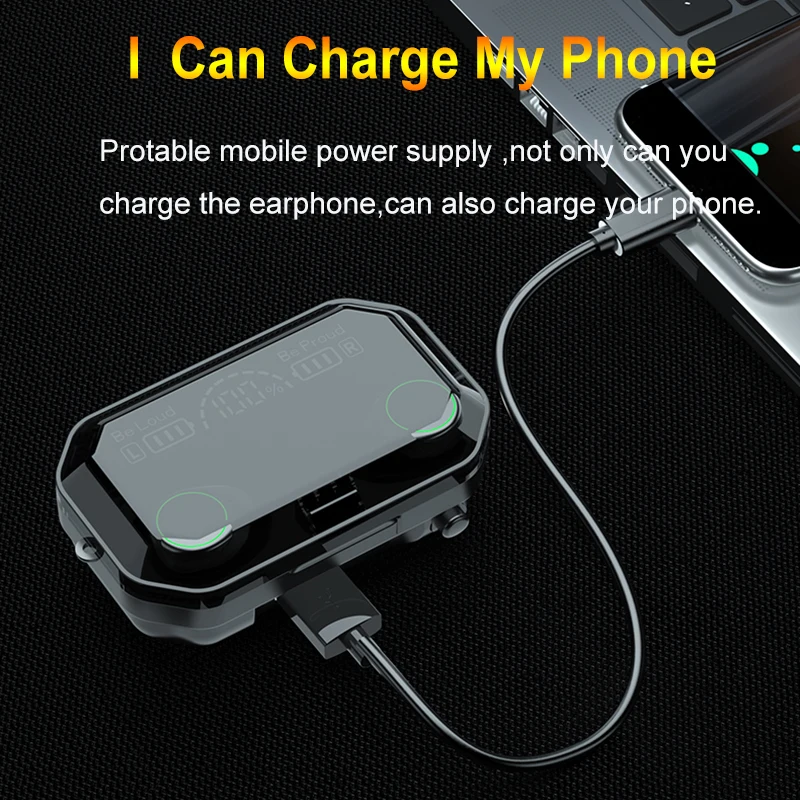 TWS Bluetooth-совместимые наушники беспроводные наушники стерео спортивные наушники HD светодиодный дисплей гарнитура с микрофоном фонарик Внешний аккумулятор