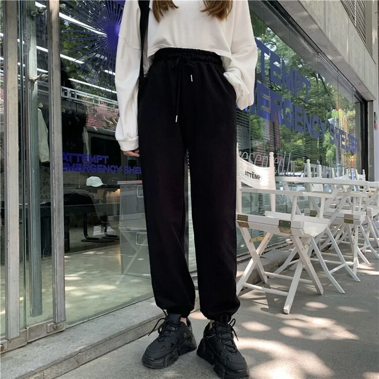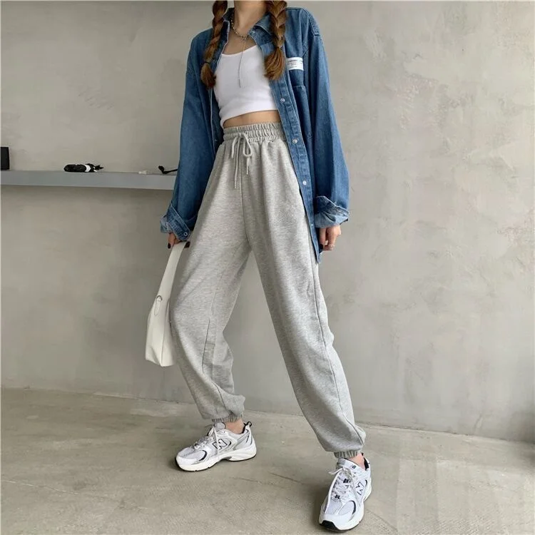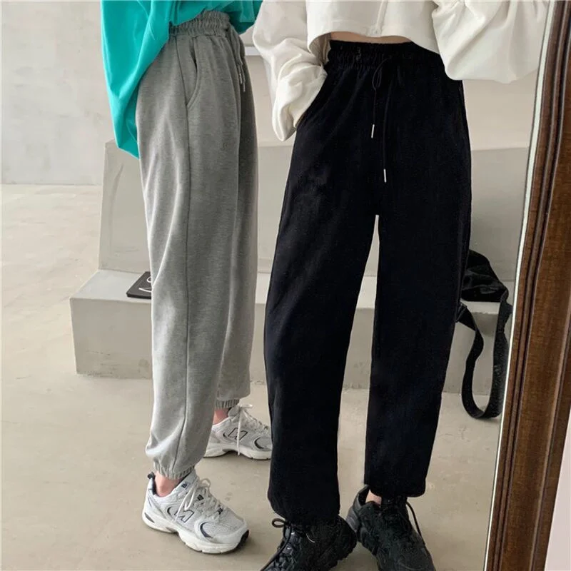 Штаны спортивные HOUZHOU женские, серые Джоггеры в стиле оверсайз, спортивные Свободные тренировочные брюки для бега, черные, модные, 2019